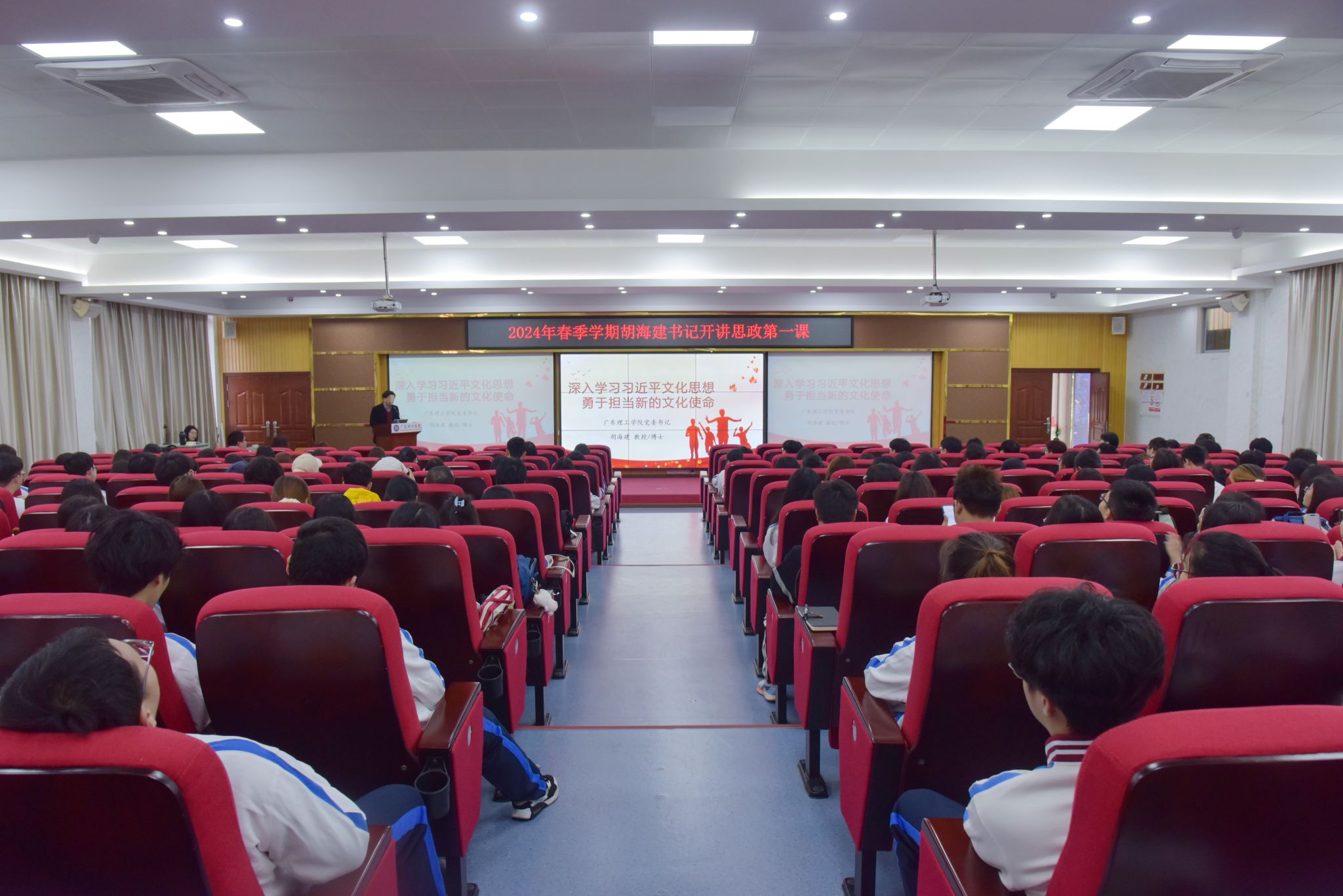 本网讯(新闻中心)为贯彻落实教育部等十部门《全面推进“大思政课”建设的工作方案》精神,3月12日上午,校党委书记胡海建以“深入学习习近平文化思想,勇于担当新的文化使命”为主题,在bat365官网高要校区42栋报告厅开讲“思政第一课”。