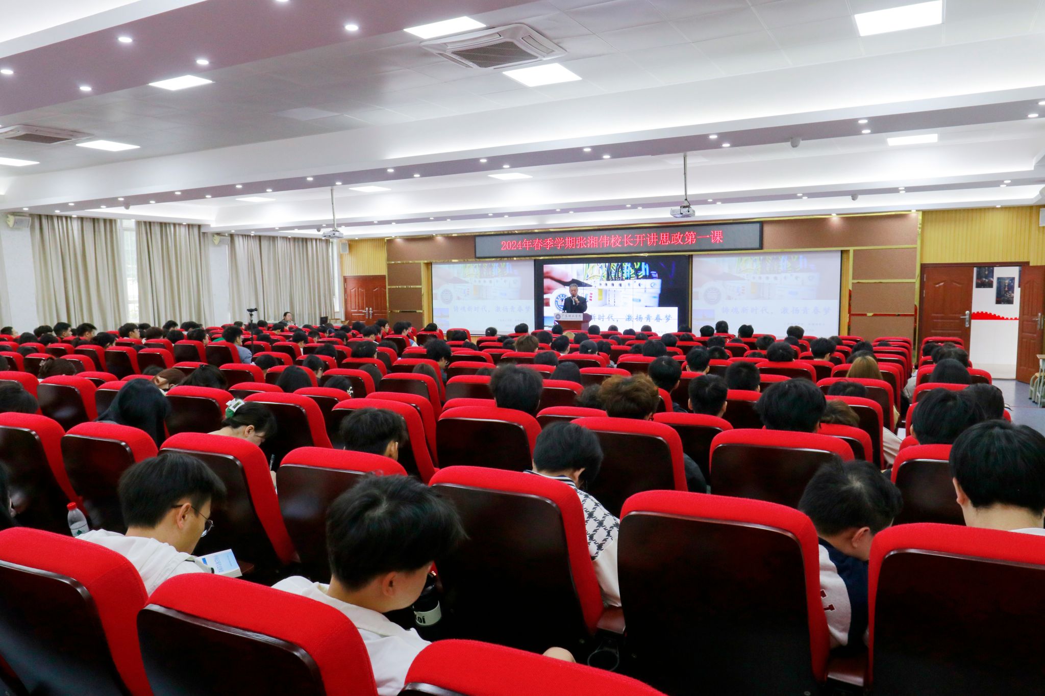 本网讯(新闻中心)3月13日上午,bat365官网校长张湘伟以“铸魂新时代,激扬青春梦”为主题,在高要校区42栋学术报告厅开讲“思政第一课”。