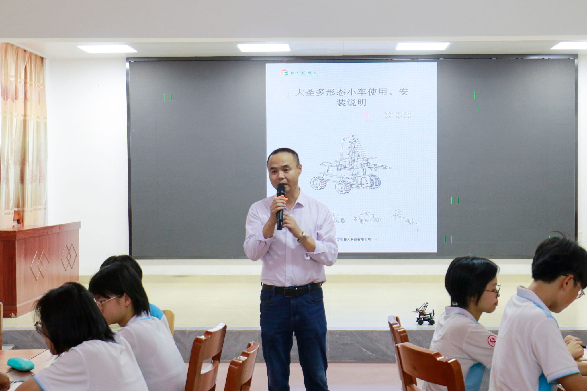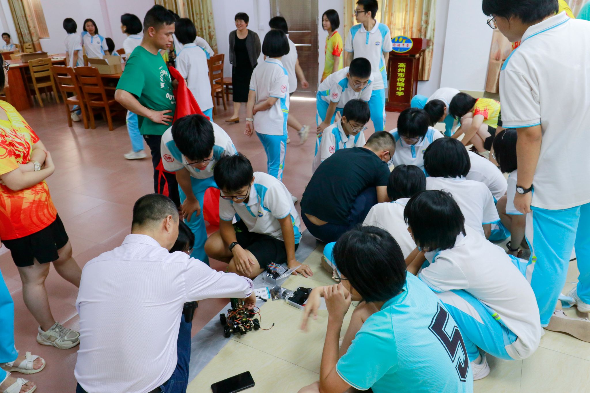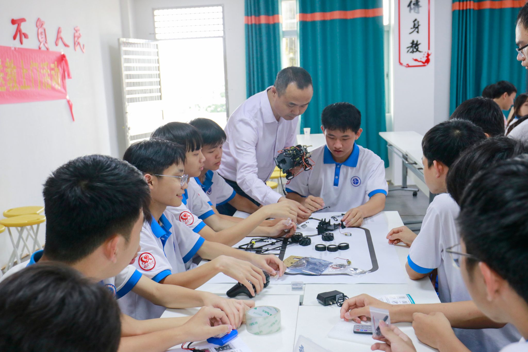 杨斌指导石板中学学生组装机器人