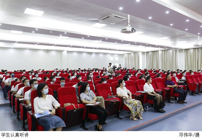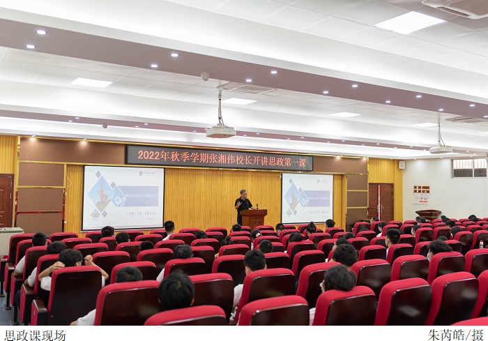 本网讯(新闻中心 陈靖婷)9月14日上午,张湘伟校长以“青春韶华正当时,志存高远笃行之”为主题,在42栋学术报告厅为2022级新生上思政第一课,2022级工业工程和汽车服务专业部分学生到场聆听。讲座由智能制造学院党总支书记彭清林主持。