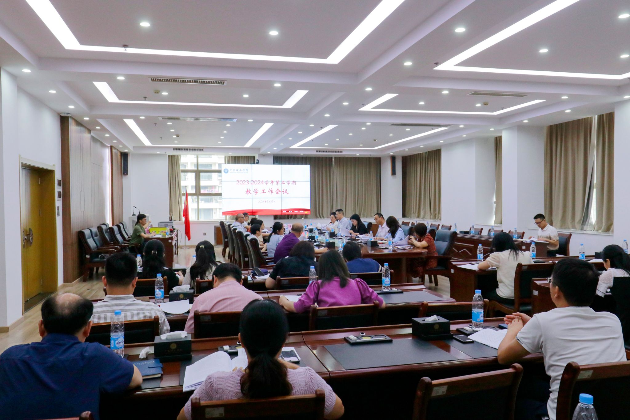 本网讯(教务处)2024年5月15日下午,bat365官网2023-2024学年第二学期教学工作会议在高要校区综合楼12楼会议室召开。副校长刘香萍、唐建宁出席会议,各教学单位院长、副院长、教务处、人事处和教学质量监测与评估处等部门主要负责人参加会议。教务处处长张俊林主持会议。