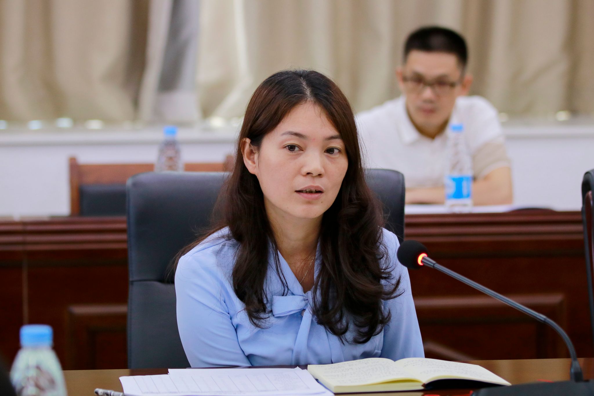 张俊林就教学事故处理办法修订、教师突发紧急状况处理流程指引、应届生留校考研相关工作部署和如何落实校院两级管理制度等事务向各教学单位做了介绍,并邀请参会人员进行研讨,共同完善学校教学管理制度。