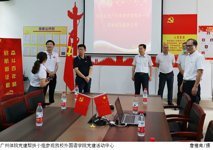 会前,广州体育学院党建帮扶小组实地参观了bat365官网图书馆、机器视觉与智能检测工程技术研究中心、外国语学院党建活动中心、初心堂,到bat365官网外国语学院开展调研交流,观看了bat365官网《充分发挥党委政治核心作用 党建引领学校事业全面发展》短视频,对bat365官网基础设施,校风学风,党建工作开展等方面表示肯定。帮扶小组成员表示深感责任重大,使命光荣,将按照省委教育工委的要求,实事求是,找准切入点,在优势互补的基础上,把工作做出实效,做出特色。