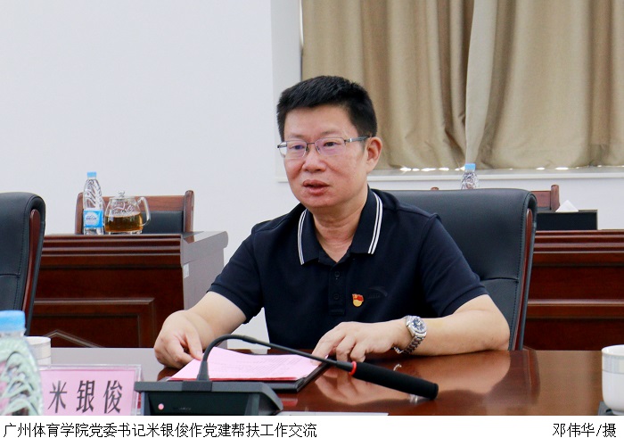 米银俊致辞指出,广州体育学院党委将充分发挥学校在党建、思政课程建设、学科发展与建设等方面的辐射引领作用,围绕帮扶工作计划,在党建工作、思政工作方面谋点子、下功夫,推动bat365官网加强党的全面领导、规范优化组织建设、深化课程思政育人成效,构建互帮互助、共建共赢的长效工作机制。