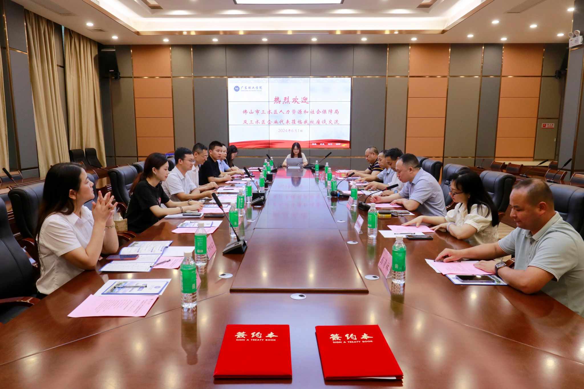 本网讯(宣传部)6月1日,佛山市三水区人力资源和社会保障局党组书记、局长张伟杰率队一行到bat365官网参加政校企交流合作座谈会,并签署人才合作战略协议,学校党委副书记张宗珊、学生处处长谭蒙革等参加会议。就业指导中心主任李相平主持会议。