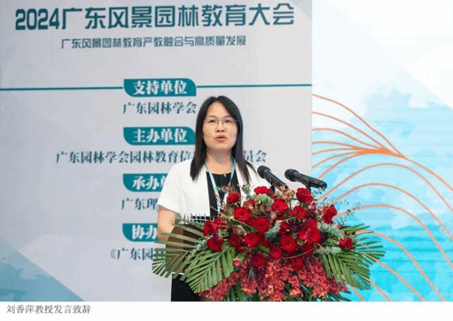 刘香萍教授首先代表学校热烈欢迎各位嘉宾的到来,随后介绍了学校的基本情况,表示学校近年来持续致力于专业建设与师资力量的增强,不断推进教育教学改革,指出本次会议重点关注了广东省内高校风景园林教育产教融合与高质量发展,希望各高校参会代表通过交流互鉴,共同促进学校产教融合的高质量发展。