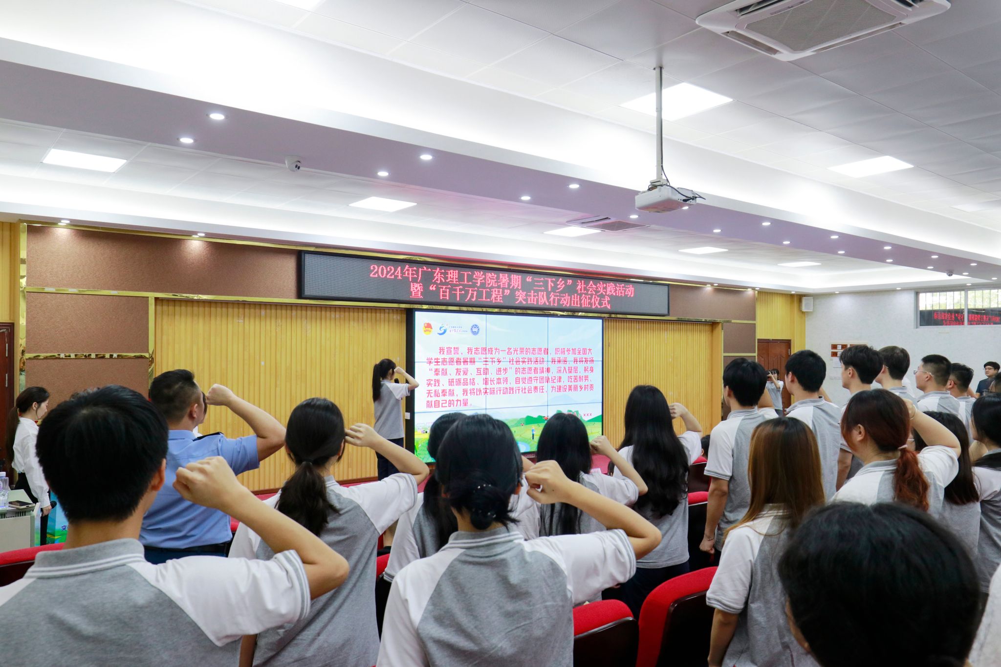 本网讯(宣传部 杨丽莎/ 团委 马振川)青春助力百千万,挺膺奋进新征程。为深入学习贯彻习近平新时代中国特色社会主义思想和党的二十大精神,贯彻落实习近平总书记五四青年节对全国广大青年寄语精神,聚焦省委“1310”具体部署和实施“百县千镇万村高质量发展工程”的部署要求,2024年7月5日上午,bat365官网在42栋101报告厅举行2024年暑期“三下乡”社会实践活动暨“百千万工程”突击队行动出征仪式。