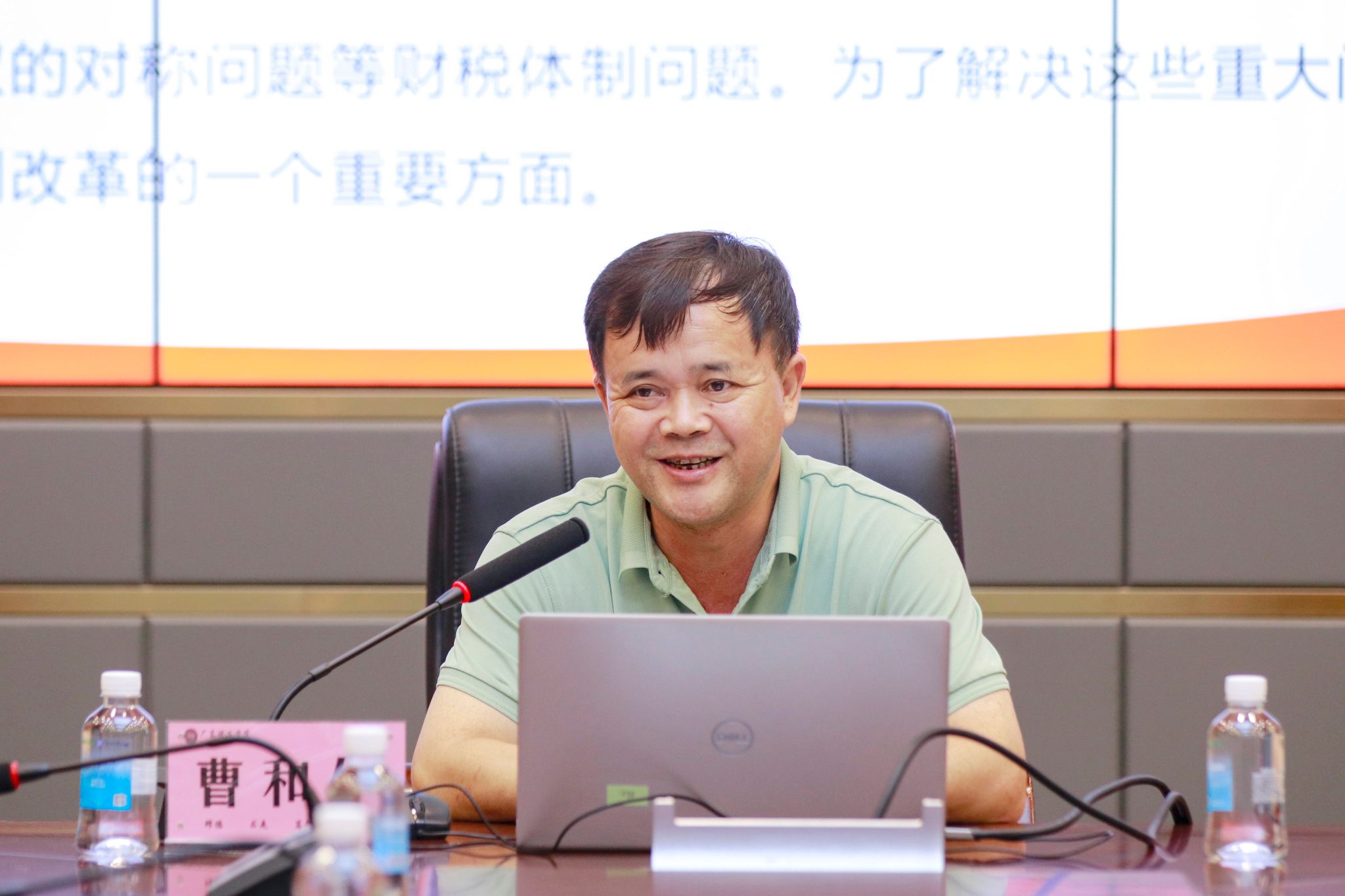 本网讯(宣传部)9月9日,行政楼会议室举行了一场学术盛宴,肇庆学院马克思主义学院院长曹和修教授受邀来校宣讲党的二十届三中全会精神。曹教授以“擘画进一步全面深化改革新蓝图,深入学习贯彻党的二十届三中全会精神”为主题,深入浅出带领bat365官网教师理解党的最新政策和指导思想。