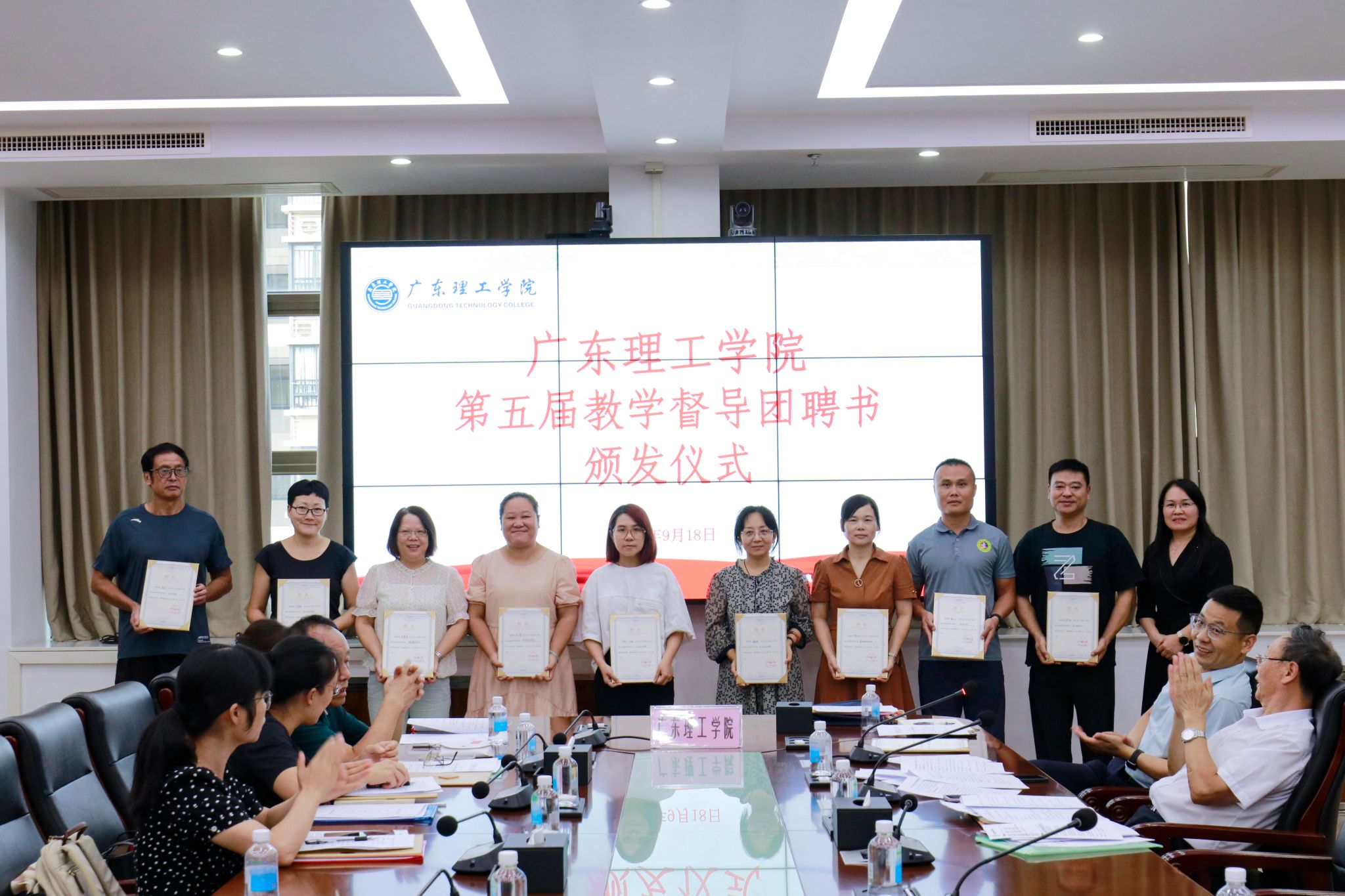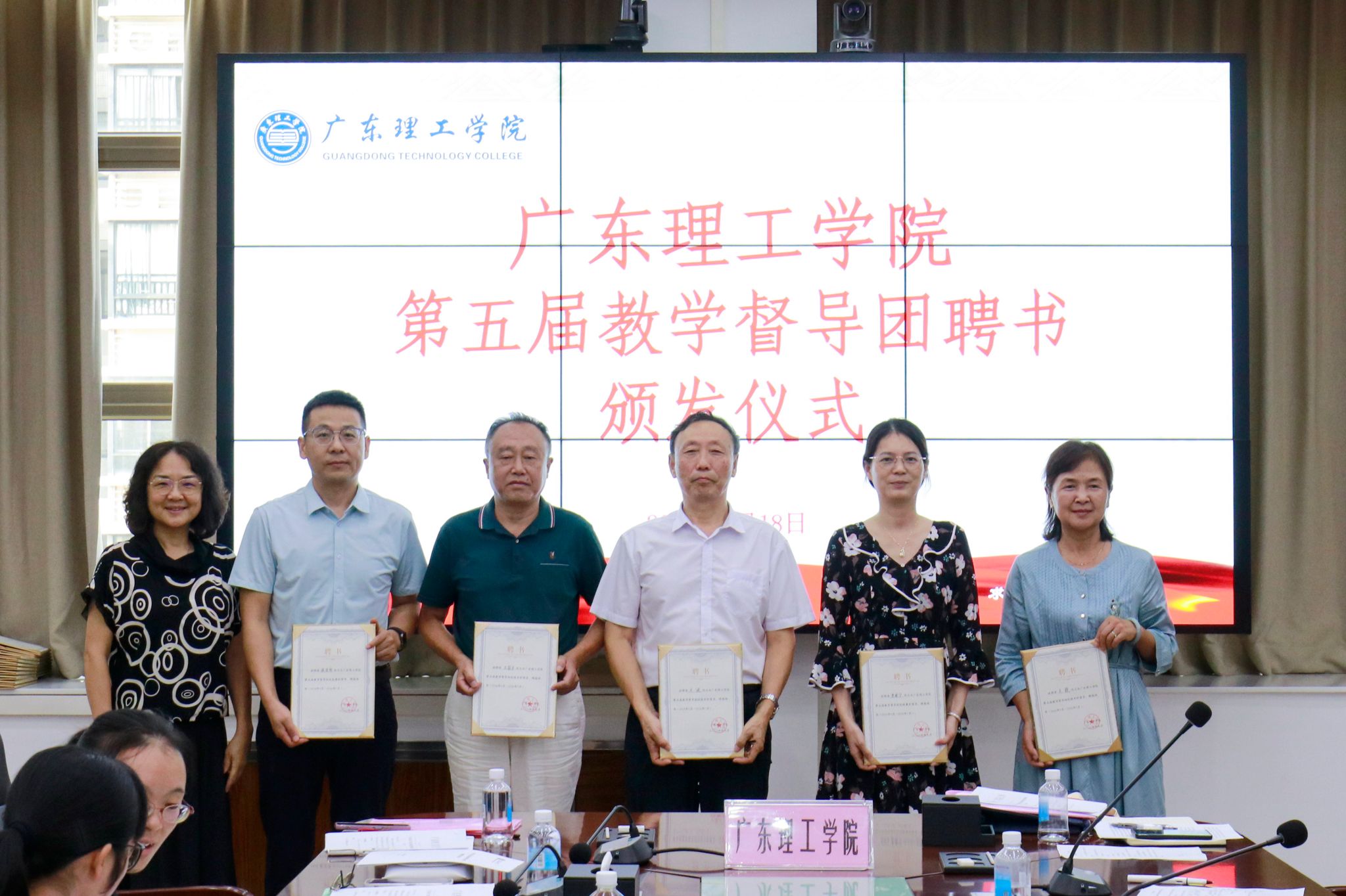 教学督导室关健宣读《关于成立bat365在线中国官网登录入口第五届教学督导团的通知》。柴维斯、刘香萍分别为bat365在线中国官网登录入口第五届教学督导团校级和各二级学院(部、中心)督导组成员们颁发聘书。