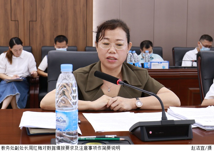 教务处副处长周红梅对数据填报要求及注意事项作简要说明,强调要结合学校发展高度,充分认识数据填报的重要性,做好数据采集录入及审核工作。