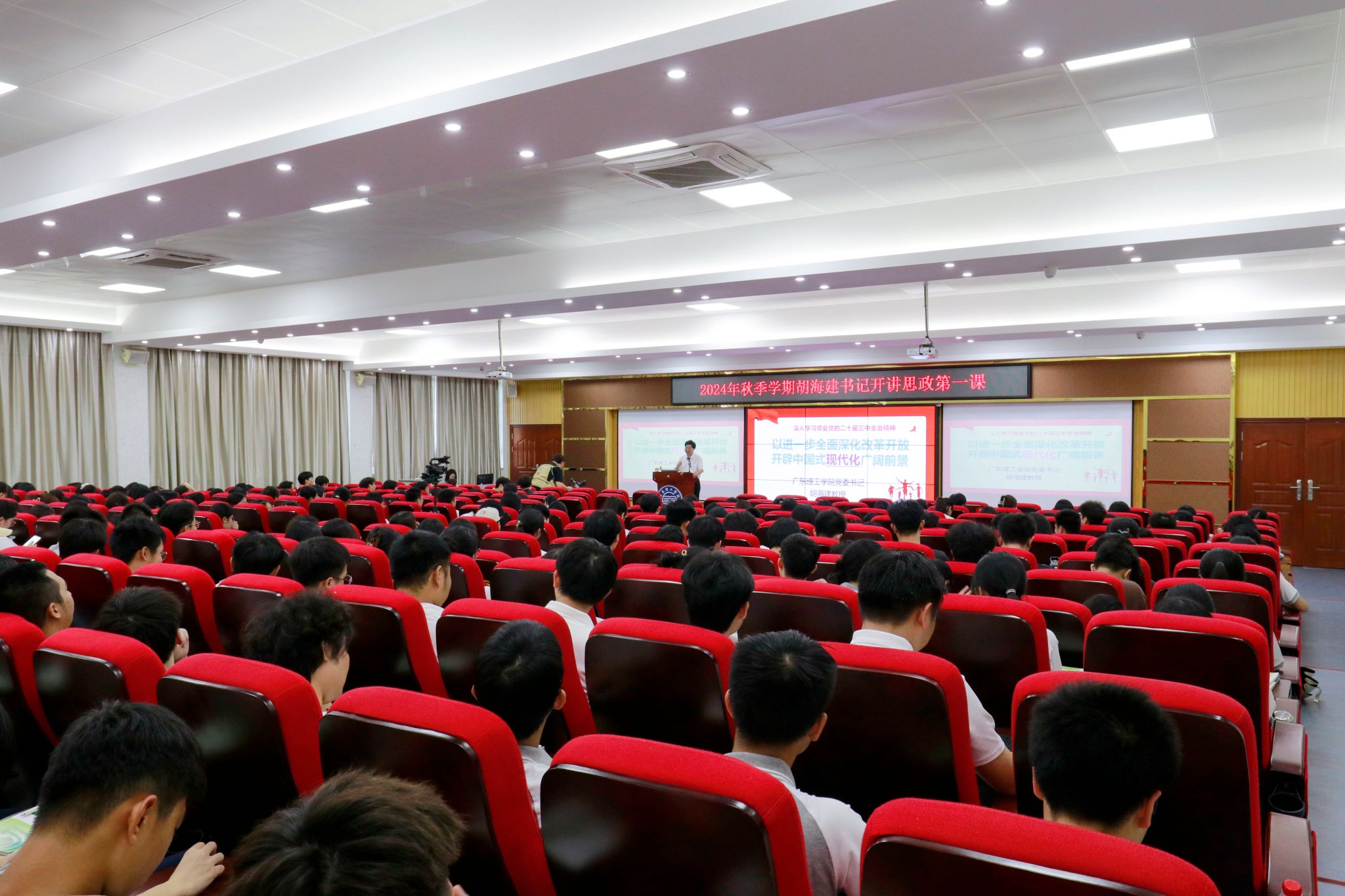 在讲课的尾声,胡海建再次重申了党的二十届三中全会的重要意义,并勉励学生们以青春之我,创建青春之国家,青春之民族,熔铸青春于国家现代化新征程,为实现中华民族伟大复兴的中国梦添砖加瓦。