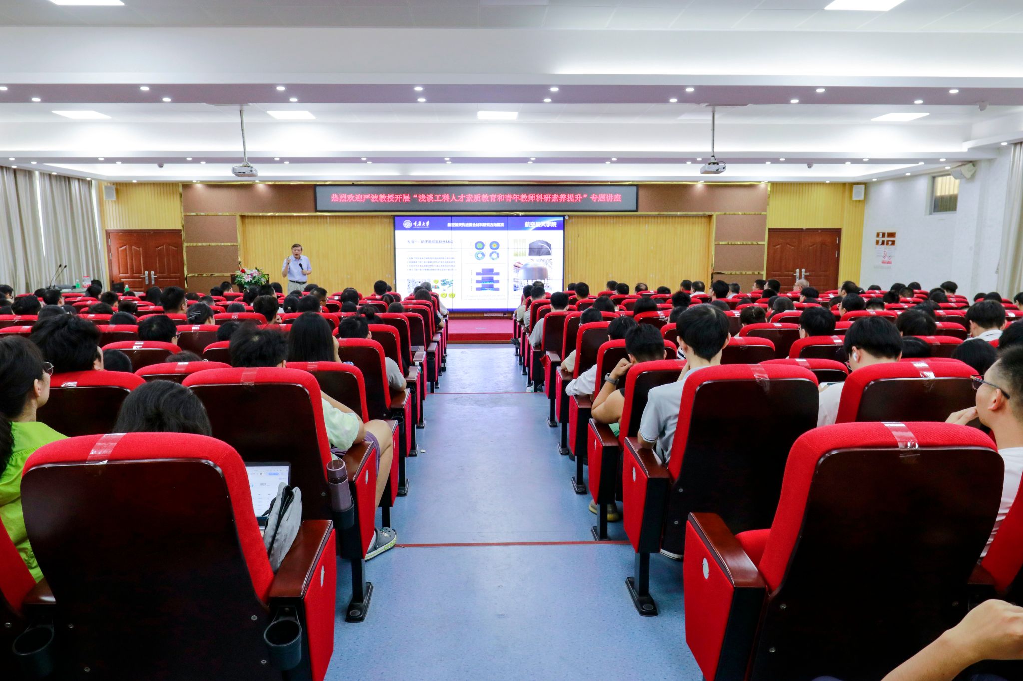 本网讯(宣传部)10月15日下午,学校在振华楼学术报告厅举办“浅谈工科人才素质教育和青年教师科研素养提升”专题讲座。讲座特邀重庆大学航空航天学院教授、工学博士、博士生导师严波主讲。校长张湘伟、副校长刘香萍、校长助理舒程出席,常务副校长柴维斯主持讲座。