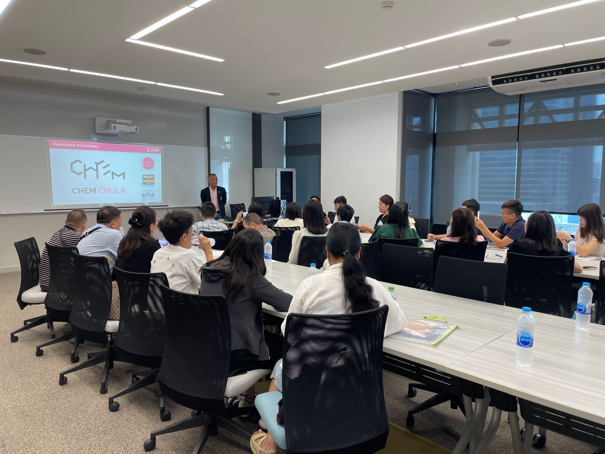 在泰国排名第一的朱拉隆功大学(Chulalongkorn University)成立于1917年,是泰国历史悠久且备受推崇的高等学府,被尊为“全国最有威望的大学”。在朱拉隆功大学,教师代表团受到了热情地接待,参观了多个学院和研究中心,并有机会与该校的教授和学者们进行深入的学术交流。Sanong Ekgasit等三位教授分享了化学物质在工程生产上的运用以及泰国核心的化学工业技术的科研创新及国际合作方面的宝贵经验,就共同关心的教育话题进行了热烈的讨论。通过这次交流,让bat365官网代表团感受到了朱拉隆功大学教授们对于学术研究的热情和专注,体验了泰国顶尖学府的教育质量和学术氛围,对泰国高等教育的科研实力和创新精神有了更加深刻的认识。