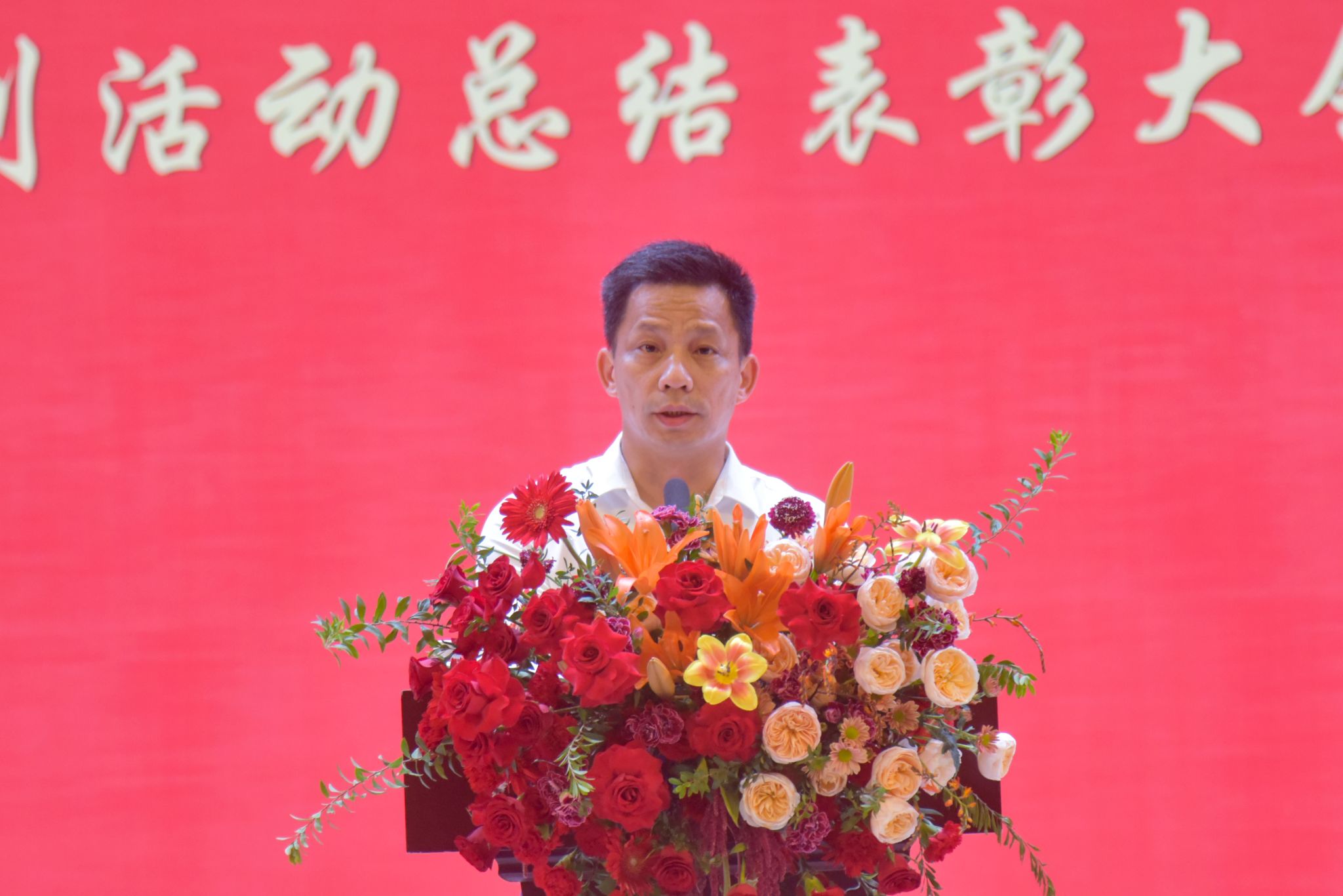 在大会的代表发言环节,党委学生工作部部长谢桂袖作为教师代表发言。他对本次活动给予了高度评价,认为活动内容丰富,形式多样,进一步激发了全校师生的爱国热情,为构建和谐校园文化环境起到了积极作用。随后,来自信息技术学院的杨一城同学作为学生代表发言。他表示,作为新时代的青年学子,要肩负起历史赋予的重任,以坚定的理想信念、扎实的学习态度和创新的思维为实现中华民族伟大复兴贡献力量。在他铿锵有力的话语中,台下师生深受感染,纷纷报以热烈掌声。