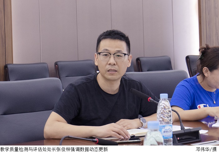 会上,党委宣传部部长张冬、教学质量检测与评估处处长张俊林、教务处副处长周红梅分别就新闻稿件规范审核、网页数据更新、专业电子白皮书格式规范等问题进行分析反馈。
