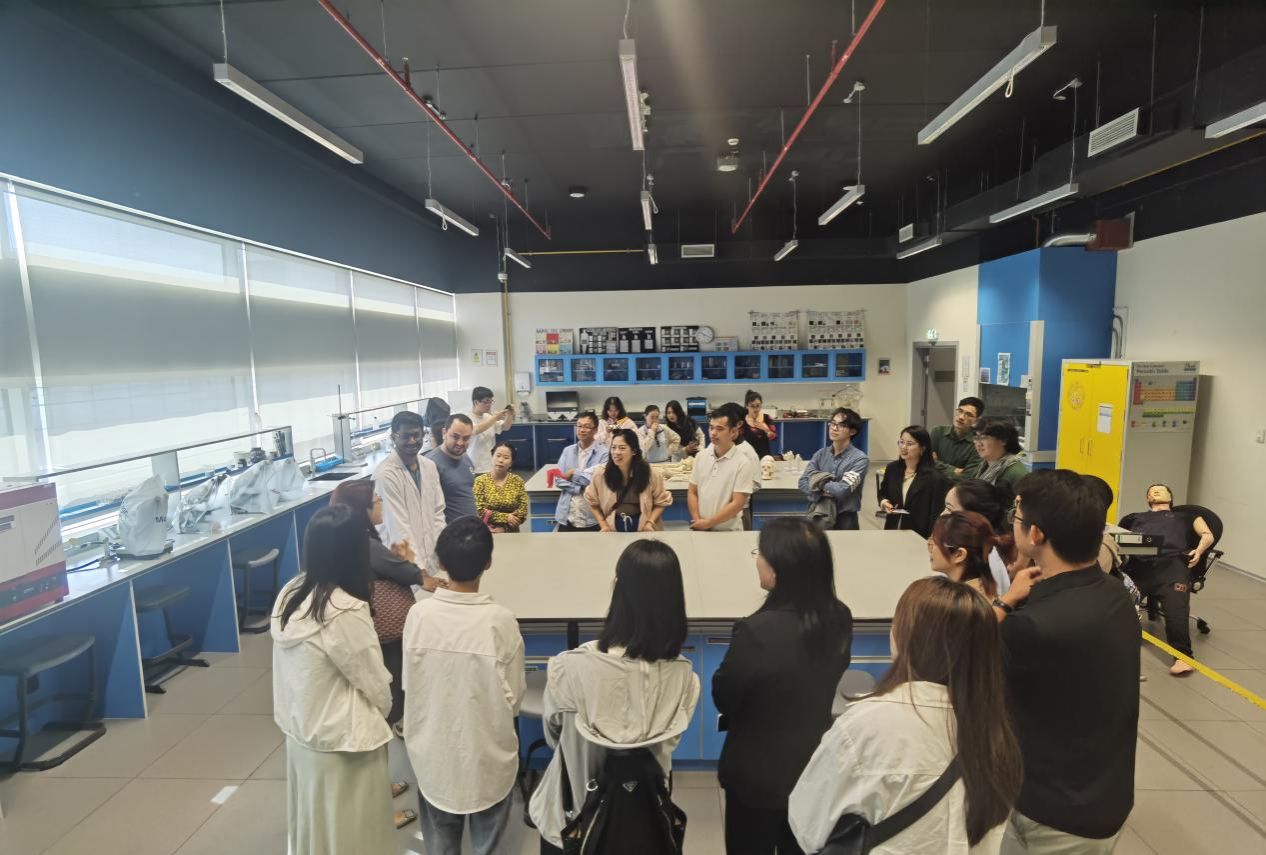 访问阿米提大学中,教师们首先深入考察了该校的机械工程类、建筑设计类、酒店管理类、艺术传媒类专业的实验室,并被邀请参加该校的“国旗日”活动,与该校主要教职工合影留念。学校还分别安排了四个学院院长与老师们分享专业课程设置情况及教学科研成果。