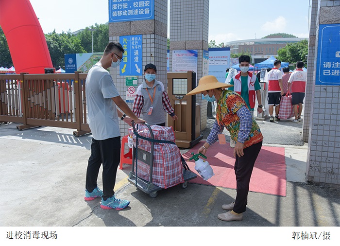 为保障学生安全入校,bat365官网设置了测温区、临时观察区、学生返校候检区、医疗服务点在内的多个工作区,统一配备了免洗洗手液、医用酒精等防疫物资,供到校人员使用消毒。