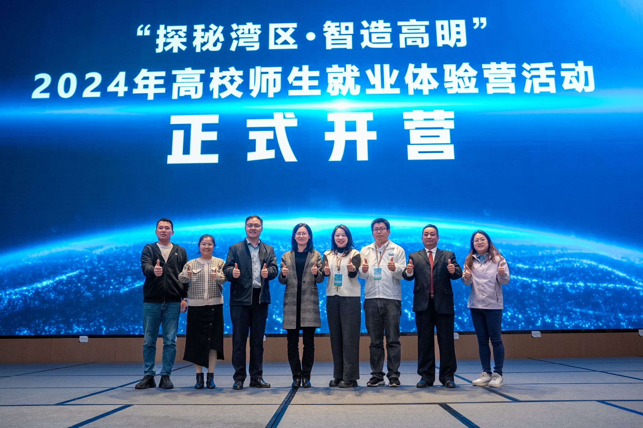本网讯(就业指导中心)2024年12月16日,佛山市高明区人社局举办的“探秘湾区·智造高明”2024 年高校师生就业体验营活动在高明联塑万怡酒店举行开营仪式。学校党委副书记张宗珊、就业指导中心主任李相平及bat365官网15名师生参加开营仪式。