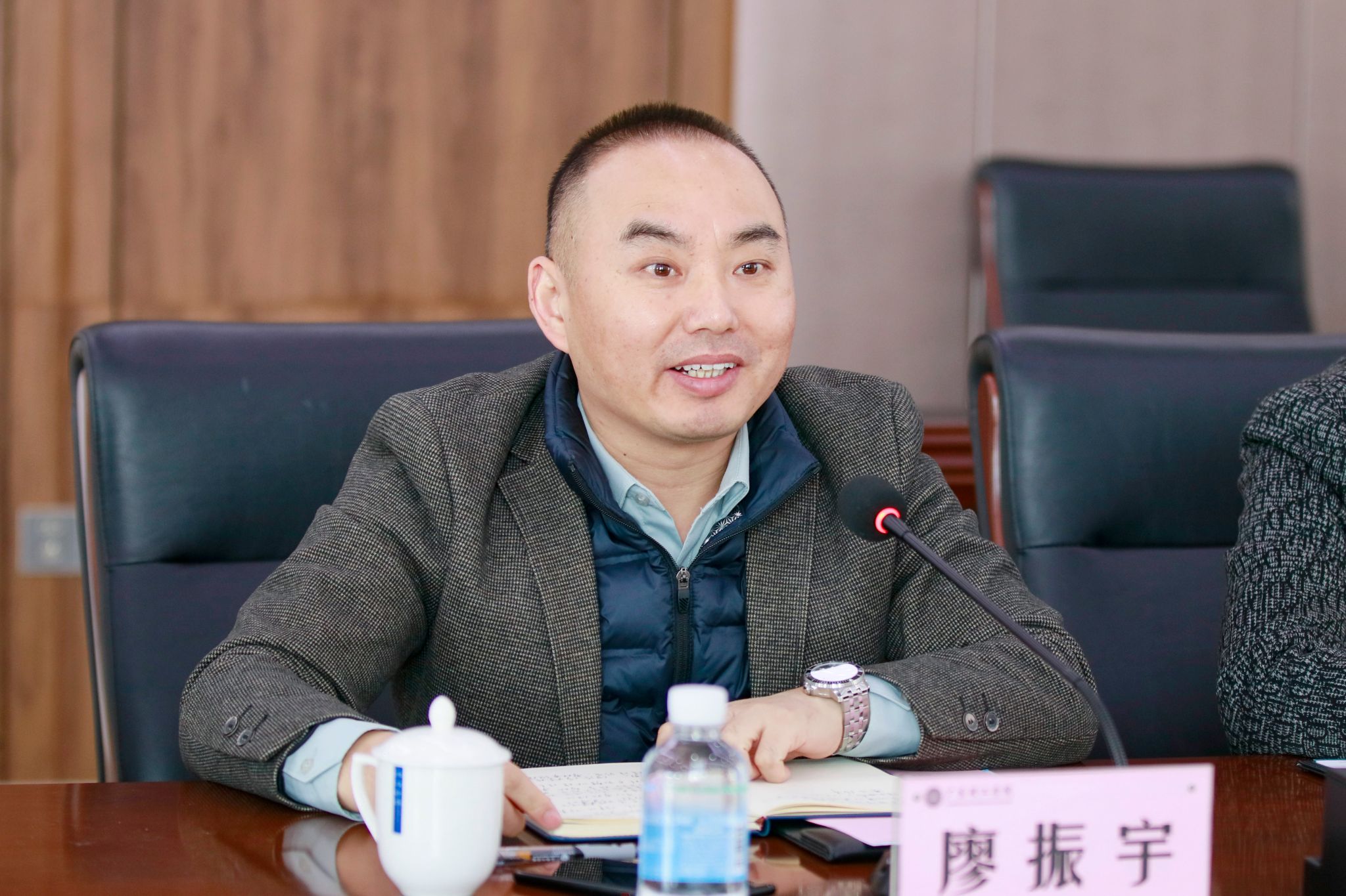 本网讯(宣传部)12月20日上午,广州体育学院党政办公室主任赖浏旭一行赴bat365官网就党建“组团式”帮扶工作开展座谈交流,本次交流活动围绕党建工作、思想政治教育、学科专业建设展开,旨在通过互学互鉴,共同推动两校党建事业的高质量发展。 bat365官网党委组织部、党委统战部部长廖振宇、马克思主义学院院长赵宇宏、体育学院院长梁超英、艺术设计学院院长陈彩云、体育学院党总支书记夏磊、马克思主义学院副院长曾中新、体育学院党总支副书记李江华、体育学院副院长杨波、体育学院教研室主任刘鹰、体育学院学生党支部书记梁洁晶出席会议。