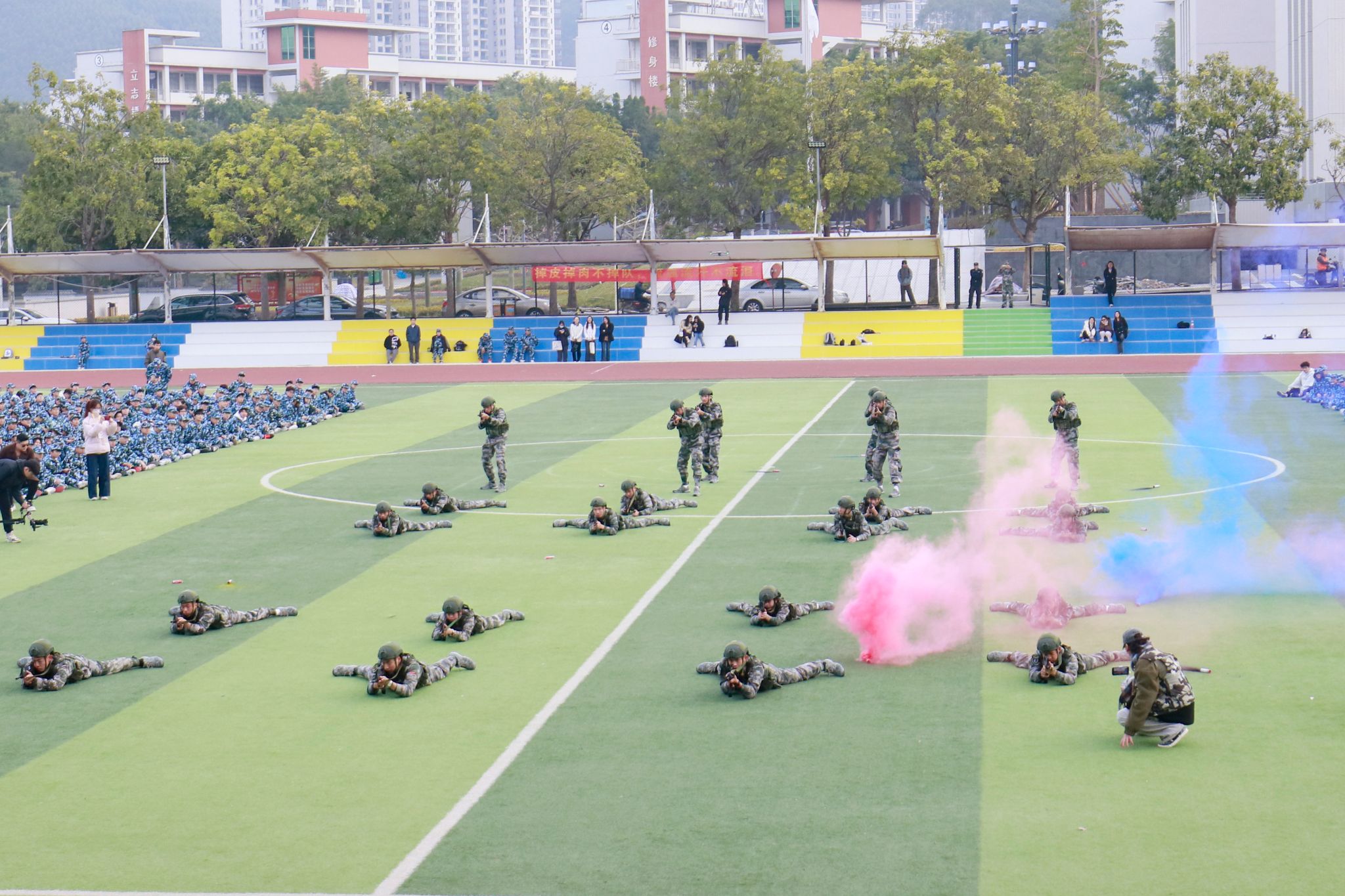 随后,军政教导队教官团进行队列示范、应急棍术、擒敌拳等一系列军事技能示范表演。