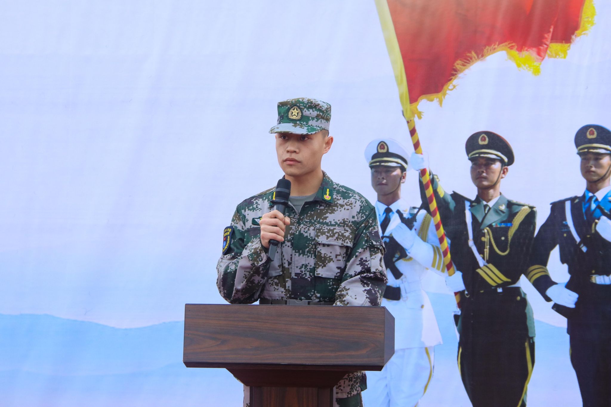2024级本科商务英语3班崔艺川、经济管理学院跨境电子商务3班林佩君代表全体参训同学庄严承诺。尊重教官,尊重师长,服从命令,听从指挥……吃苦耐劳、拼搏向上,磨炼坚强意志,锻炼过硬体质。