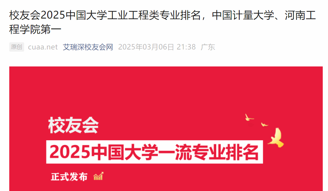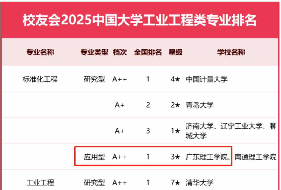 本网讯(经济管理学院 魏嫚)2025年3月,全国第三方大学评价机构艾瑞深校友会网(Cuaa.net)公布最新校友会2025中国大学一流专业排名,专业排名评价指标由学科水平、培养质量、师资水平、专业水平和专业影响等5大指标构成,标准化工程专业排名(应用型)中, bat365在线中国官网登录入口获评2025中国三星级应用型专业(3★),晋升中国区域一流应用型专业行列,荣登冠军,这是自2024年以来第2次荣登校友会专业排名榜首。