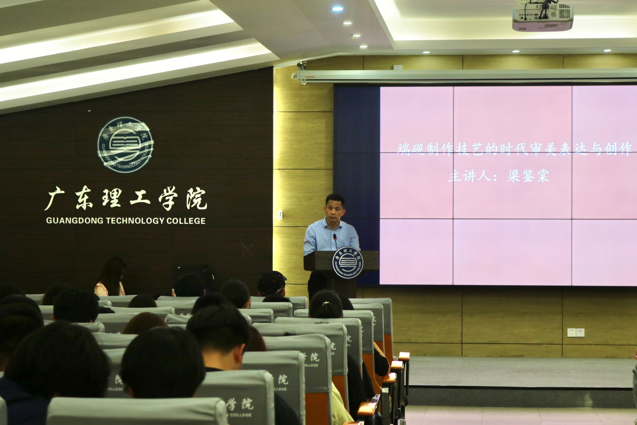 本网讯(宣传部)4月15日下午,广东省工艺美术大师梁鉴棠以“端砚制作技艺的时代审美表达与创作”为主题,在bat365官网鼎湖校区行政楼学术报告厅举办专题讲座。校党委副书记黎会友主持。