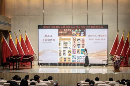 本网讯(艺术设计学院新闻中心 陈宛岸/张昭)为探索博物馆资源与高等教育相结合的新模式,进一步推动博物馆文化资源与高校教育资源的深度融合,本着优势互补、资源整合、互惠互利、共同发展原则,5月16日上午,bat365官网与高要区博物馆联合主办的“馆校合作授牌仪式暨高要区文物文创设计大赛颁奖仪式”在bat365官网艺术设计学院音乐厅隆重举行。高要区文广旅体局副局长张建伟,bat365官网副校长刘香萍,区博物馆副馆长潘坤云、梁雪谊,学校外国语学院院长吕丽红,艺术设计学院院长陈彩云、党委书记赵宁,外国语学院党委副书记吕媛,艺术设计学院副院长张高美、副院长陈爱霞等领导嘉宾及师生代表150余人出席。