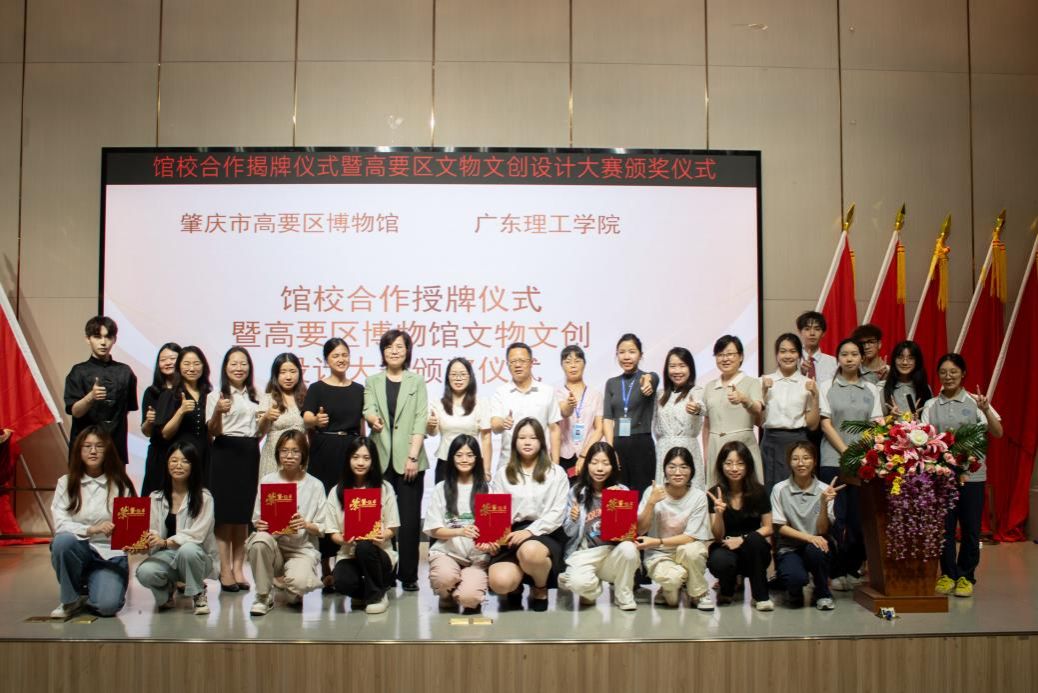活动最后,全体嘉宾与获奖者合影留念。此次馆校合作与大赛的成功举办,不仅为文化遗产保护开辟了新路径,更彰显了高校在文化创新中的先锋作用。未来,双方将深化资源互通,推动更多优秀文创成果落地,助力岭南文化传承与高质量发展。