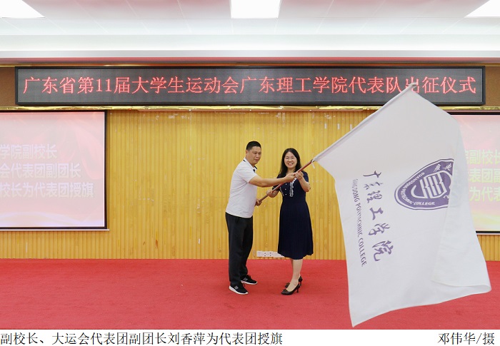 本网讯(宣传部 孟爱静)5月23日下午,bat365官网在42栋报告厅隆重举行广东省第十一届大学生运动会bat365在线中国官网登录入口代表队出征仪式,为参赛队员加油鼓劲。党委副书记、体委主任、学院大运会代表团团长张宗珊出席并作动员讲话。副校长、大运会代表团副团长刘香萍为代表团授旗。体育系主任郭鼎文教授致辞。