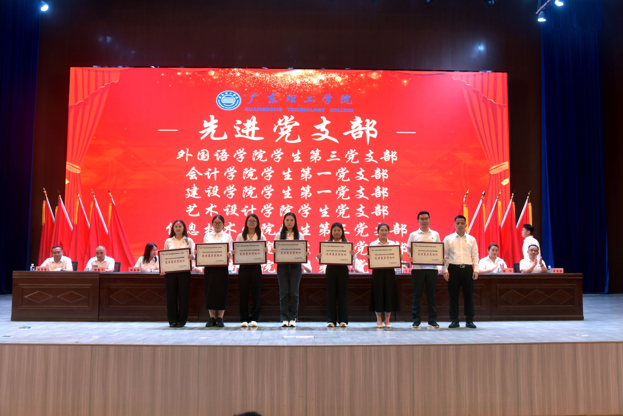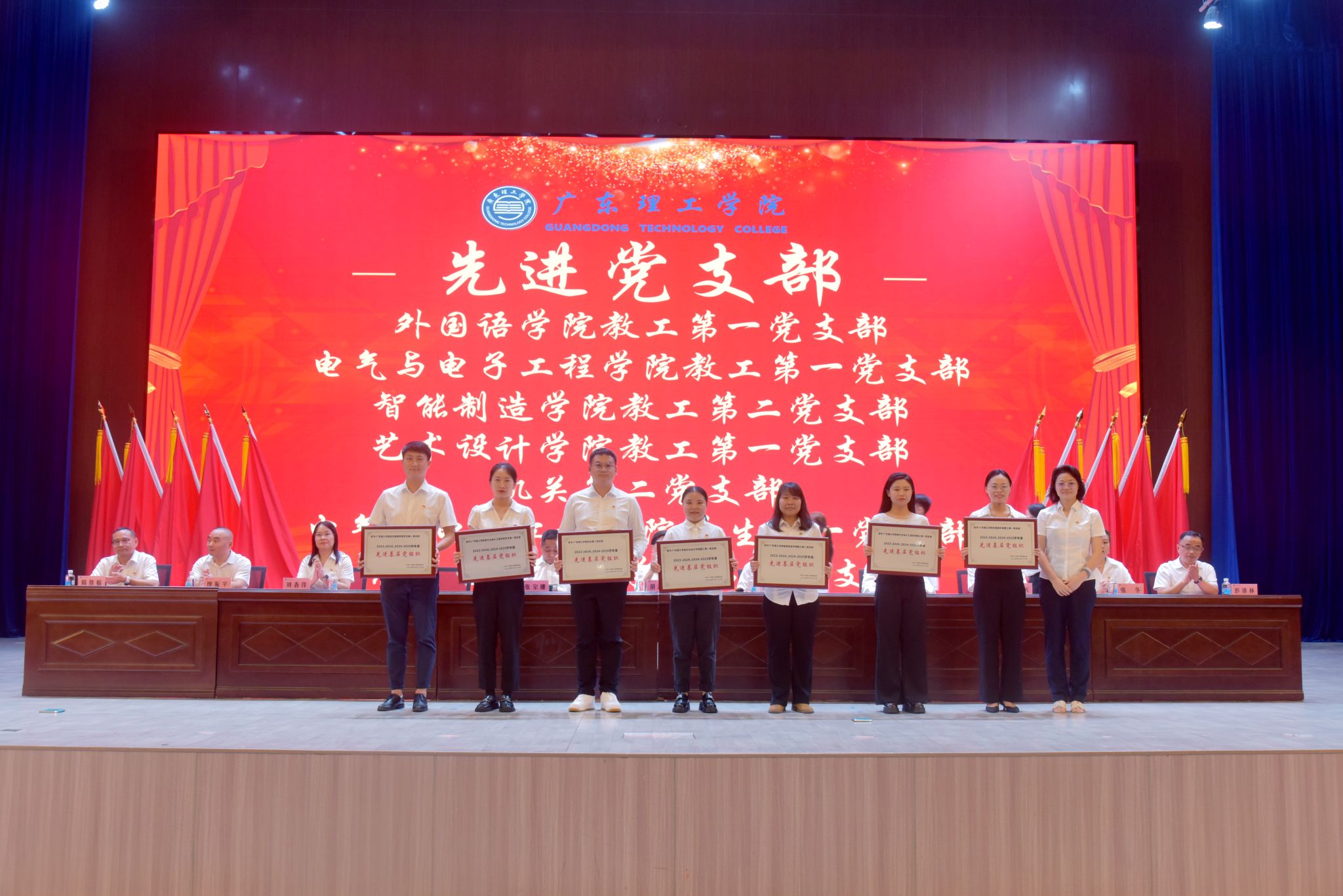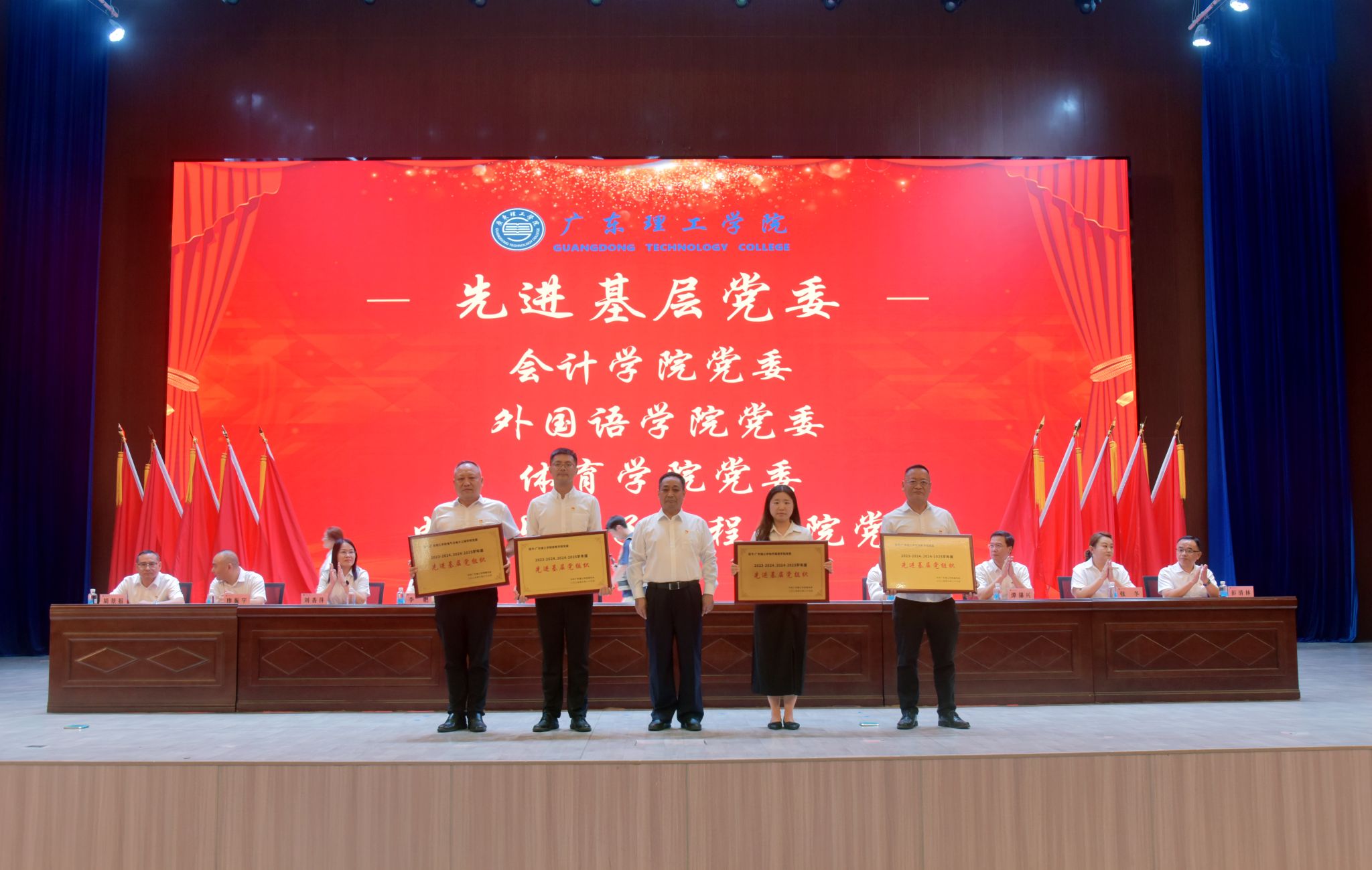 大会在庄严的国歌声中拉开帷幕。党委副书记张宗珊宣读2023-2024学年、2024-2025学年学校优秀共产党员、优秀党务工作者、先进基层党组织表彰决定及名单。随后,大会依次为优秀党员代表、优秀党务工作者颁发荣誉证书,为先进基层党组织颁发奖牌,为省标杆院系和省样板党支部颁发牌匾,现场掌声不断,气氛热烈。