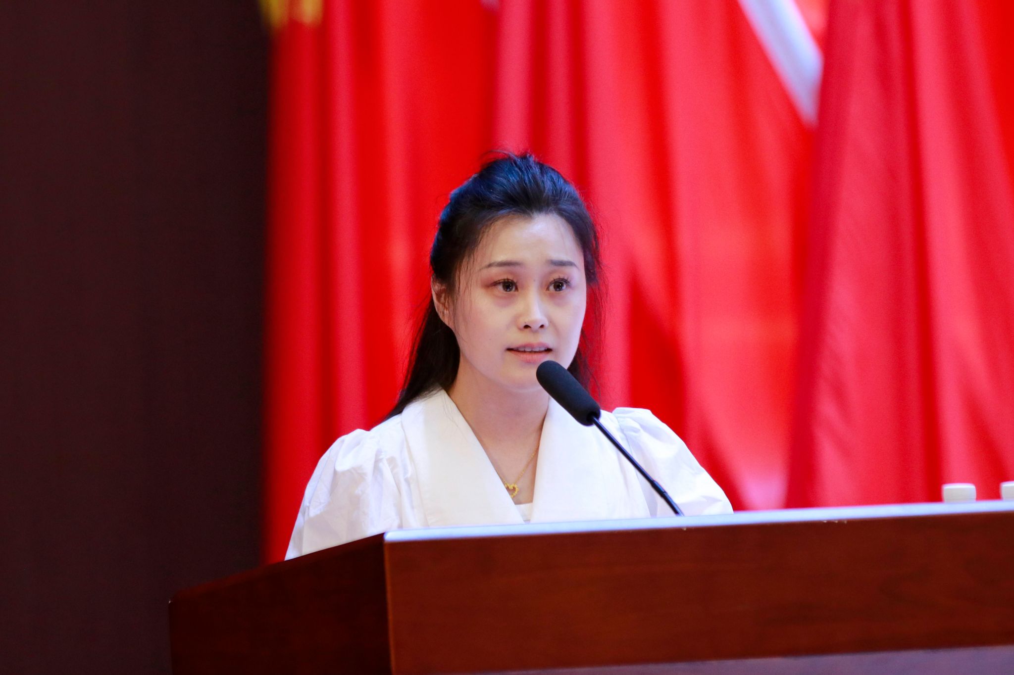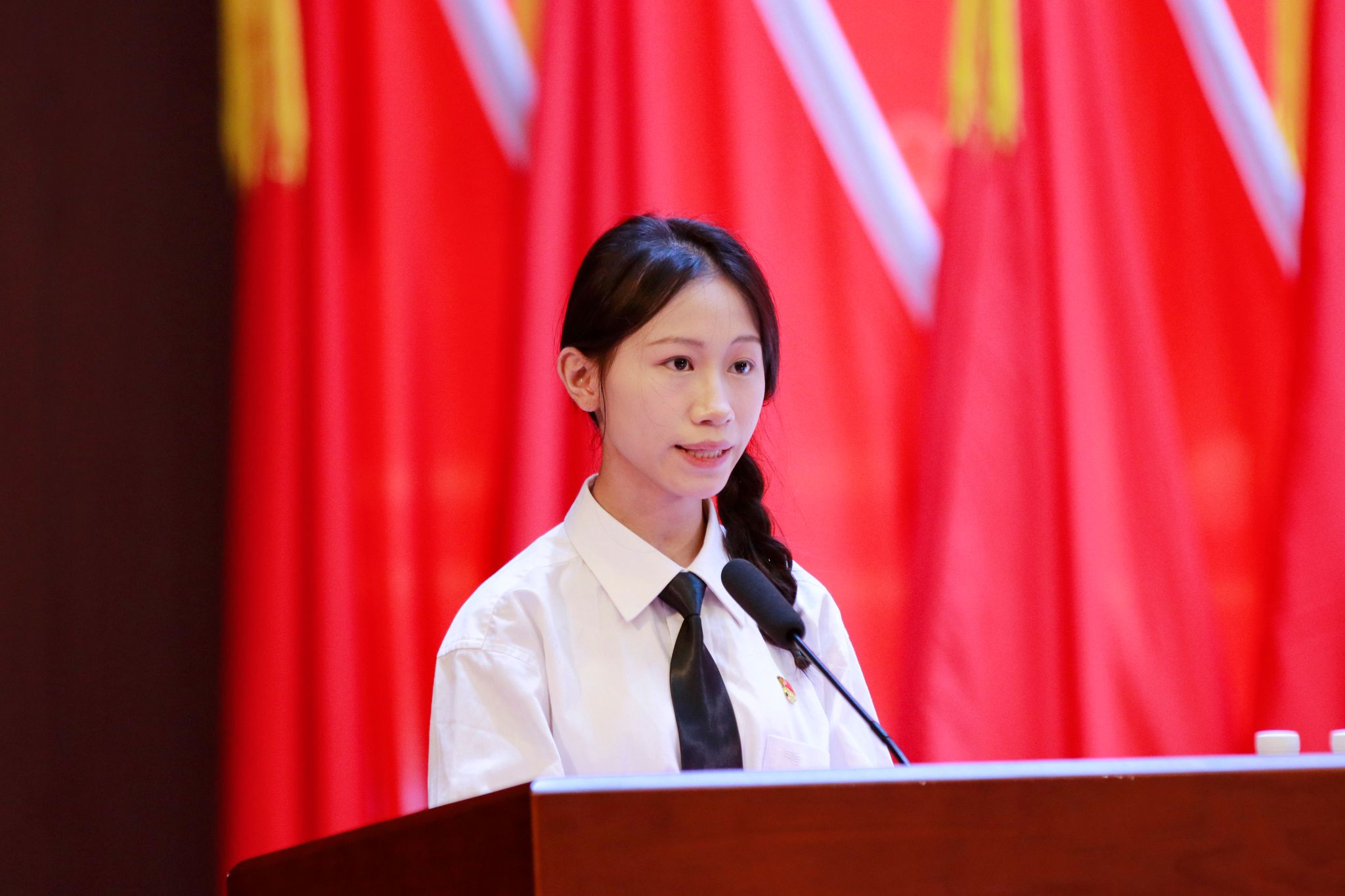 优秀教师党员代表陈睿琦与优秀学生党员代表李慧妍先后上台发言。他们结合自身经历,分享了在教学科研、学生工作中的感悟与担当,展现了党员的先锋模范风采。