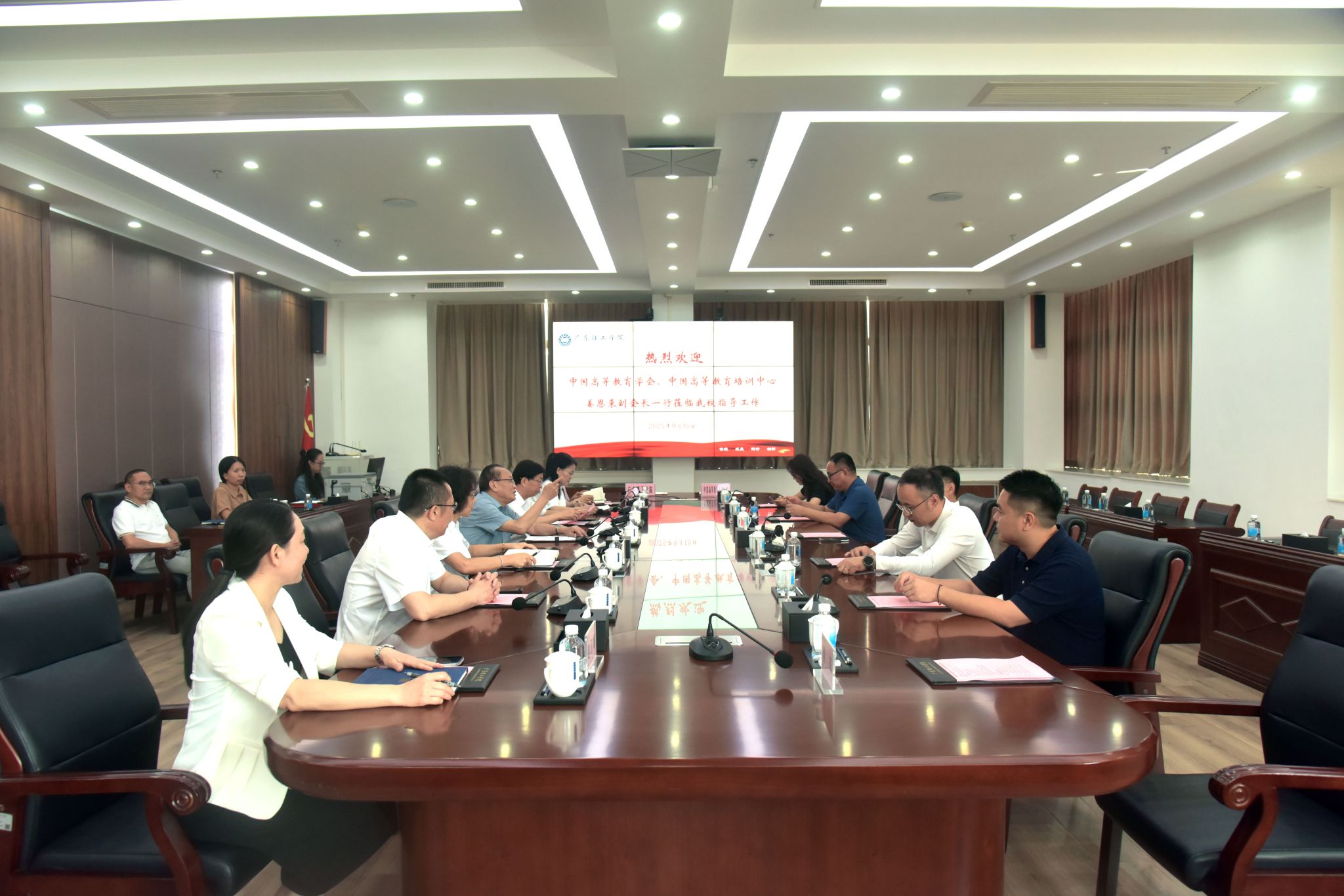 本网讯(宣传部)9月15日上午,中国高等教育学会副会长、中国高等教育培训中心主任姜恩来一行到bat365官网调研指导工作。座谈会议在综合楼12楼会议室举行,学校副校长刘香萍主持。