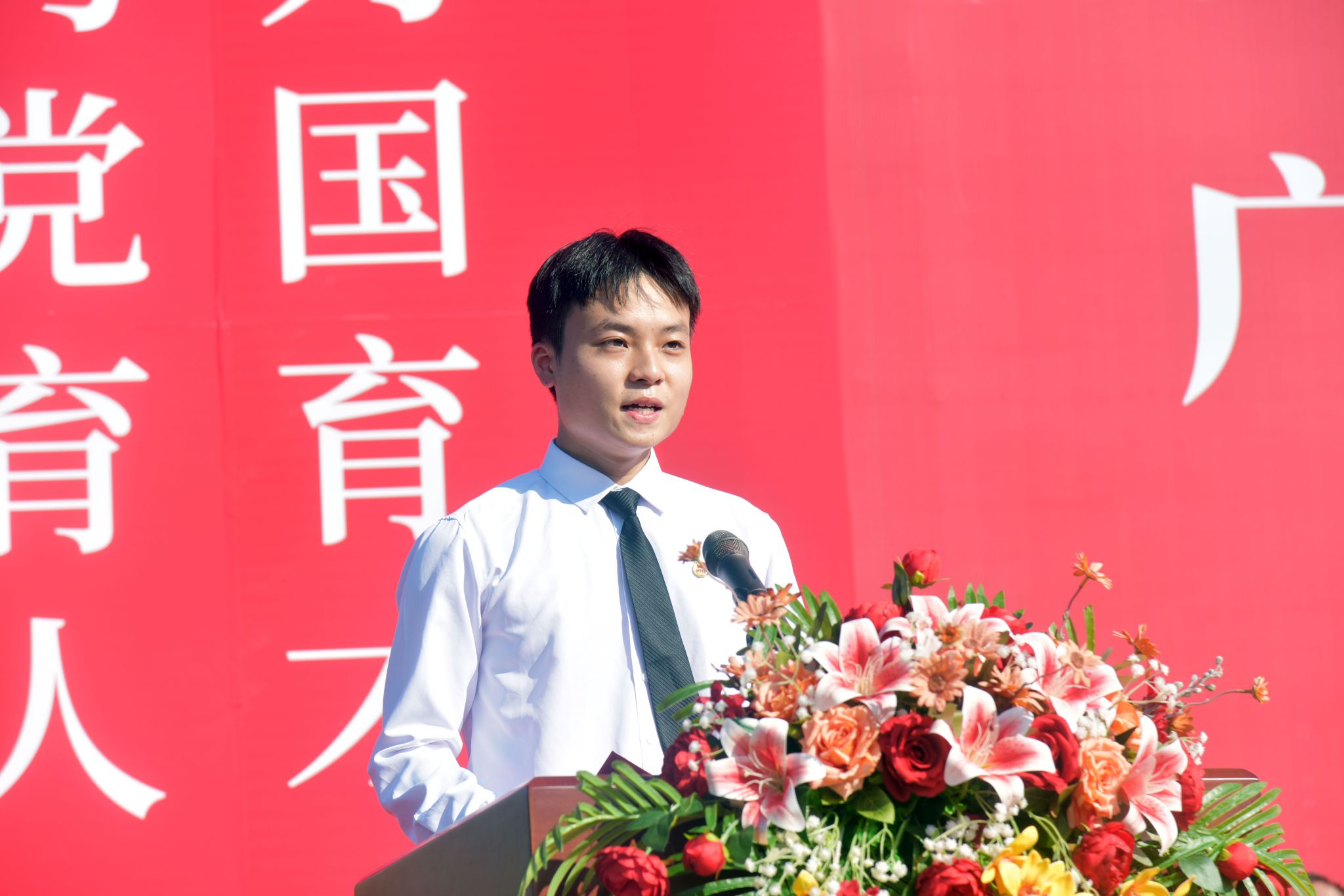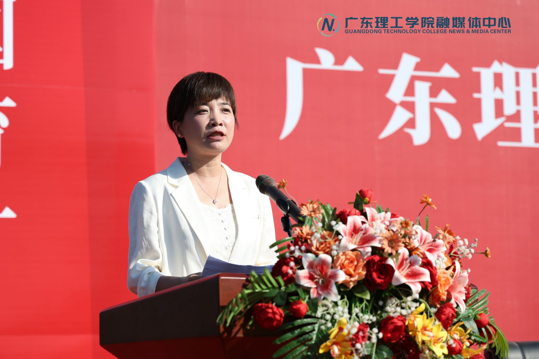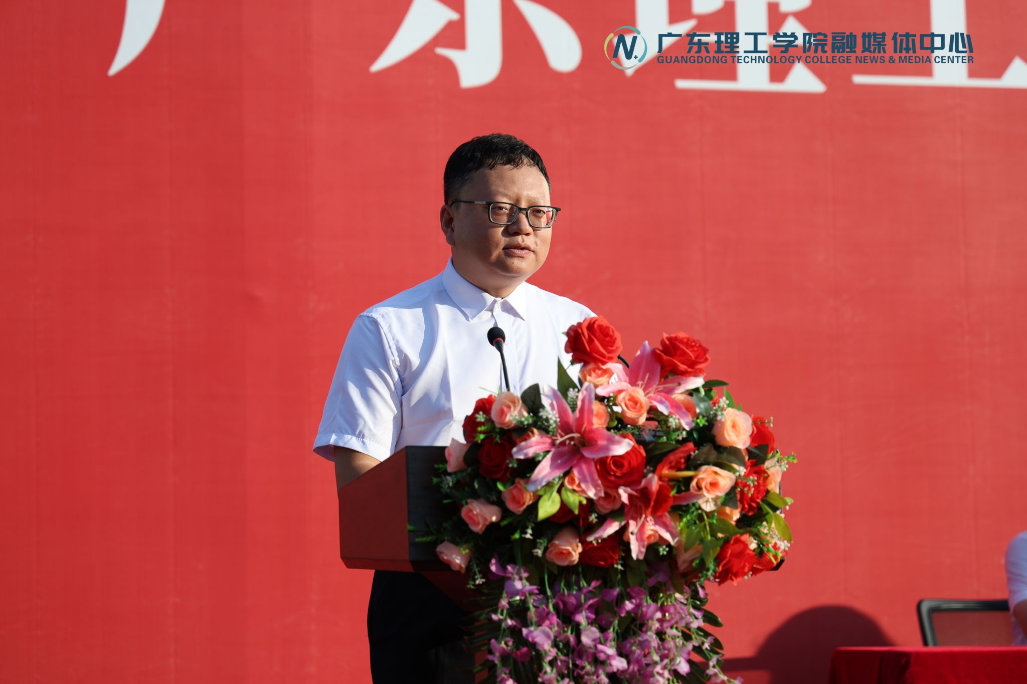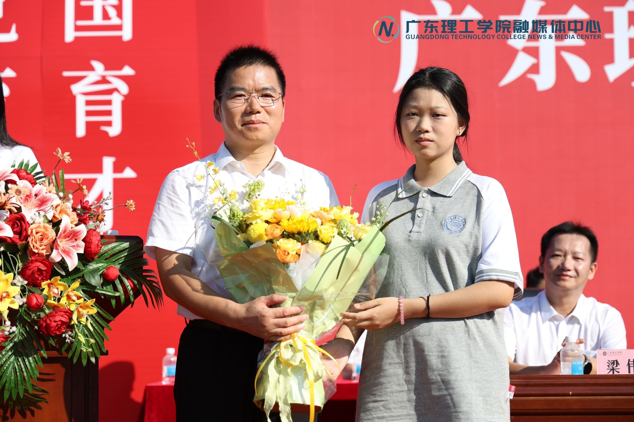 典礼上,来自怀集中学的李明波校长作为基础教育代表受邀在高要校区致辞,寄语新生“自由以责任为边界”,并与现场师生共同完成“中学—大学育人接力”献花仪式。