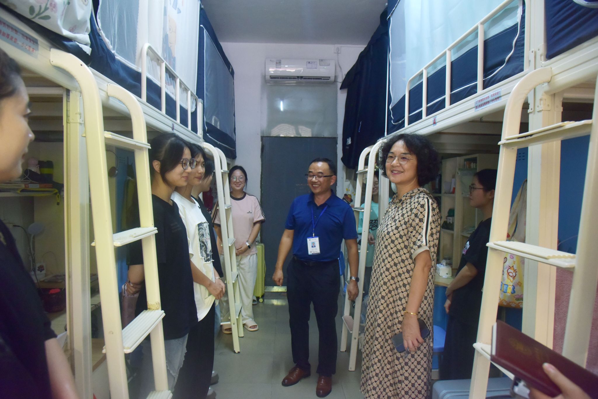 每走进一间宿舍,校领导细致地查看住宿环境,亲切地与同学们交谈,详细了解大家开学以来的学习适应情况、日常生活需求以及课外活动参与情况。“来自哪里?”“专业学习有没有困难?”“饮食还习惯吗?”一句句朴实而真诚的关心,拉近了师生之间的距离。交流中,校领导勉励学生要珍惜大学时光、打好专业基础,也要注重身心健康发展,积极融入集体、参与校园文化活动。同时还特别嘱咐同学们遇到困难要及时向学院和辅导员反映,学校始终是同学们的坚强后盾。
