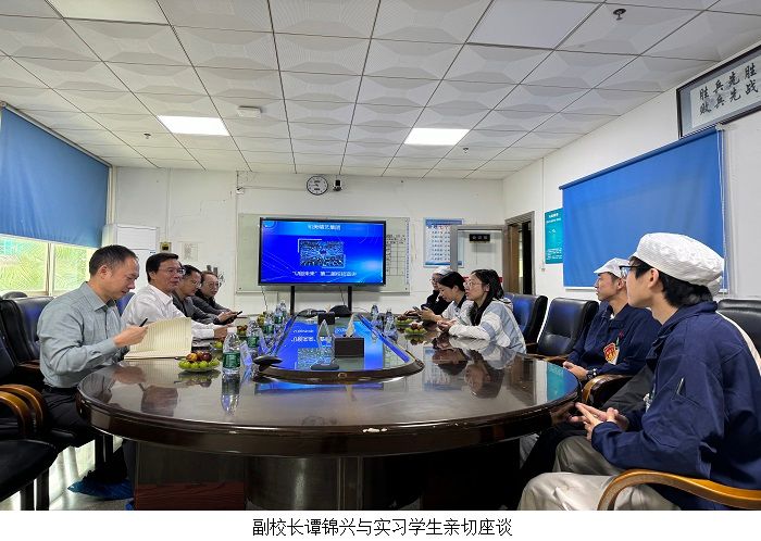 随后,谭锦兴副校长与bat365官网在岗实习学生亲切交流,询问他们在薪酬待遇、工作适应及生活保障等方面的情况,并鼓励学生珍惜实践机会、锤炼专业技能,企业负责人亦肯定了实习学生的学习能力与敬业态度。