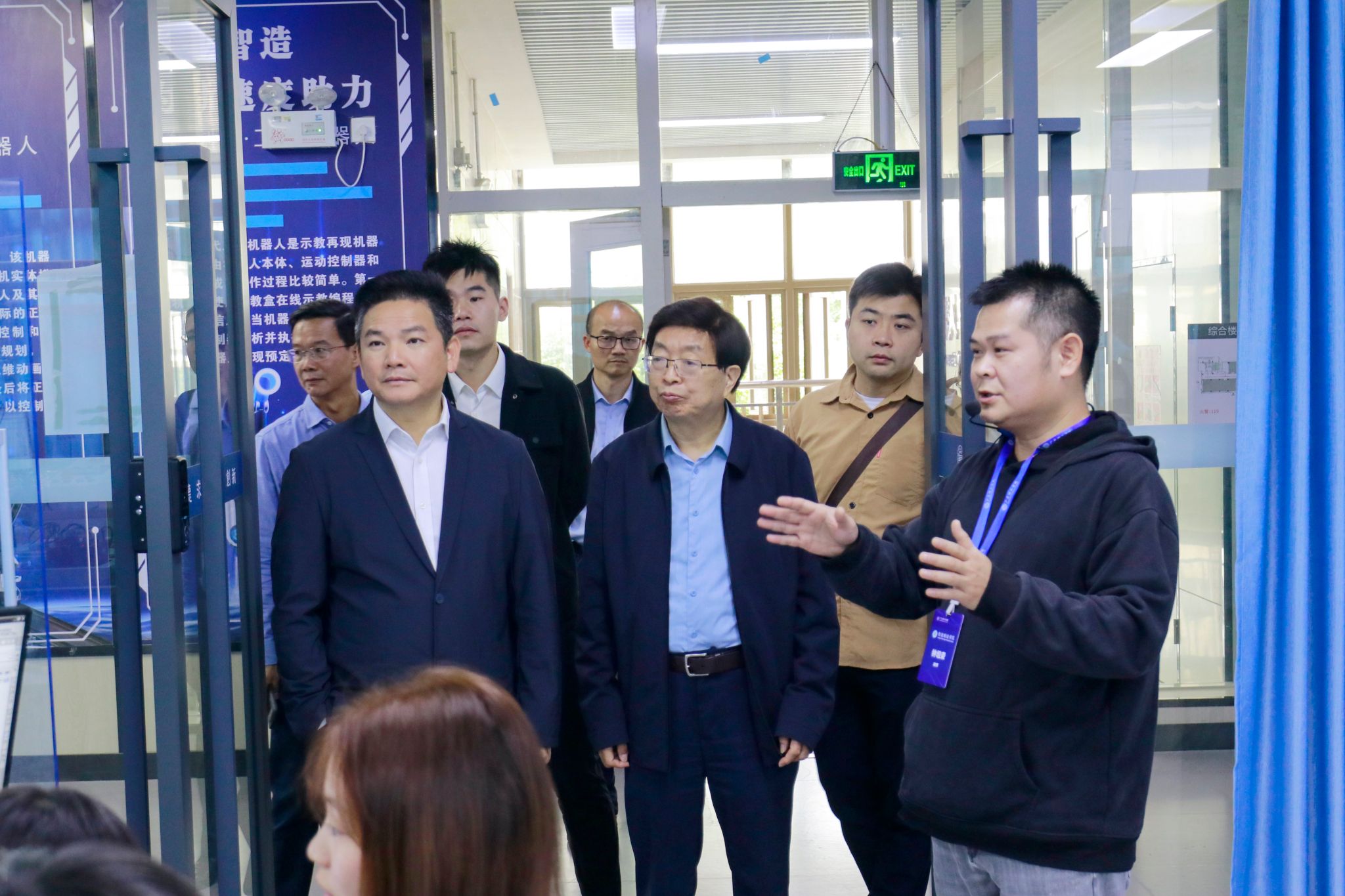 会前,杨富邦区长一行在校领导陪同下实地考察了加工中心实验基地、机器人产业学院等实验实训室,详细了解bat365官网实践教学和产教融合情况。