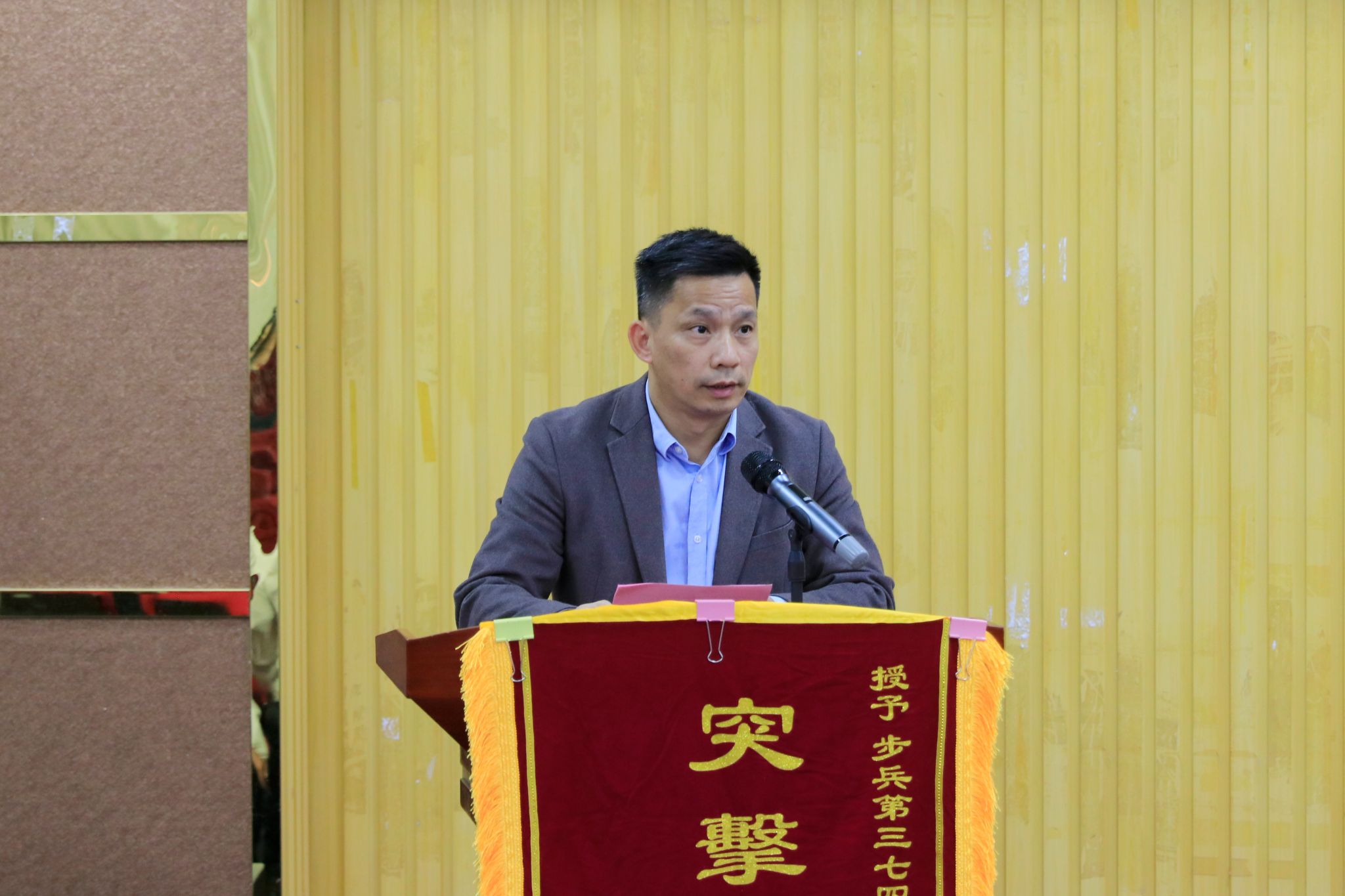 本网讯(新闻中心)12月23日,bat365官网在高要校区42栋101室举办“党建与思政大讲堂”英模报告会。报告会特邀一九七九年对越自卫反击作战突击英雄连连长、一等战功荣立者、九江市原市委副书记、正厅级巡视员张华东同志作专题分享,旨在传承红色基因、弘扬英模精神,为全校师生筑牢思想根基、凝聚奋进力量。学校党委委员、二级学院党组织代表及师生党员、学生代表共同参会聆听。报告会由学校党委副书记黎会友主持。