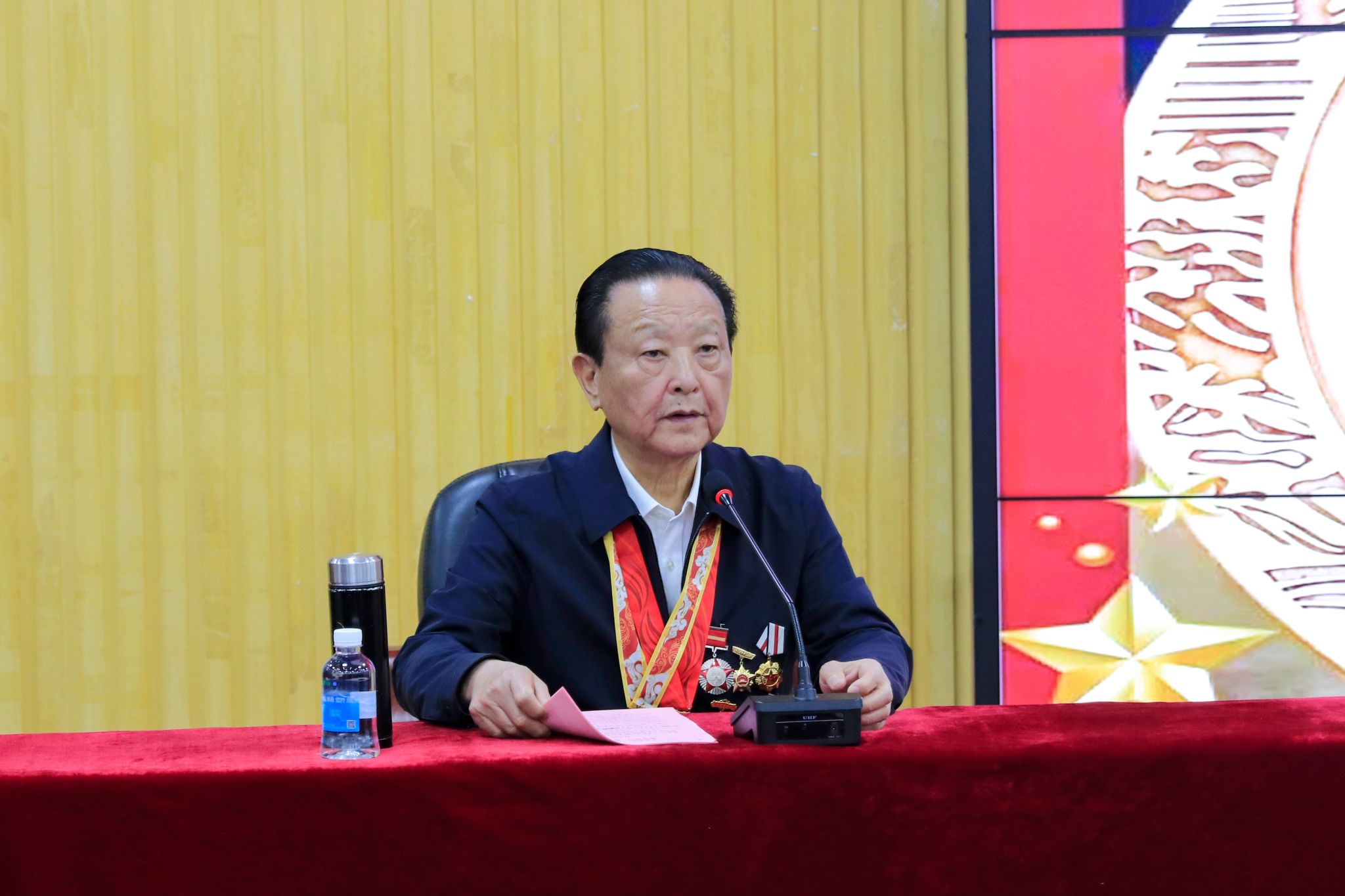 学校党委书记胡海建在致辞中援引习近平总书记重要论述,强调“一个有希望的民族不能没有英雄,一个有前途的国家不能没有先锋。包括抗战英雄在内的一切民族英雄,都是中华民族的脊梁,他们的事迹和精神都是激励我们前行的强大力量”。他指出,张华东同志是身经百战、务实为民的老英雄,其个人经历既是一部厚重的家国奉献史,更是一本鲜活的爱国主义教材。他寄语全体师生,要从英模事迹中汲取信仰力量,学习传承英雄的忠诚品格与斗争气概,将崇敬之情转化为干事创业的实际行动。