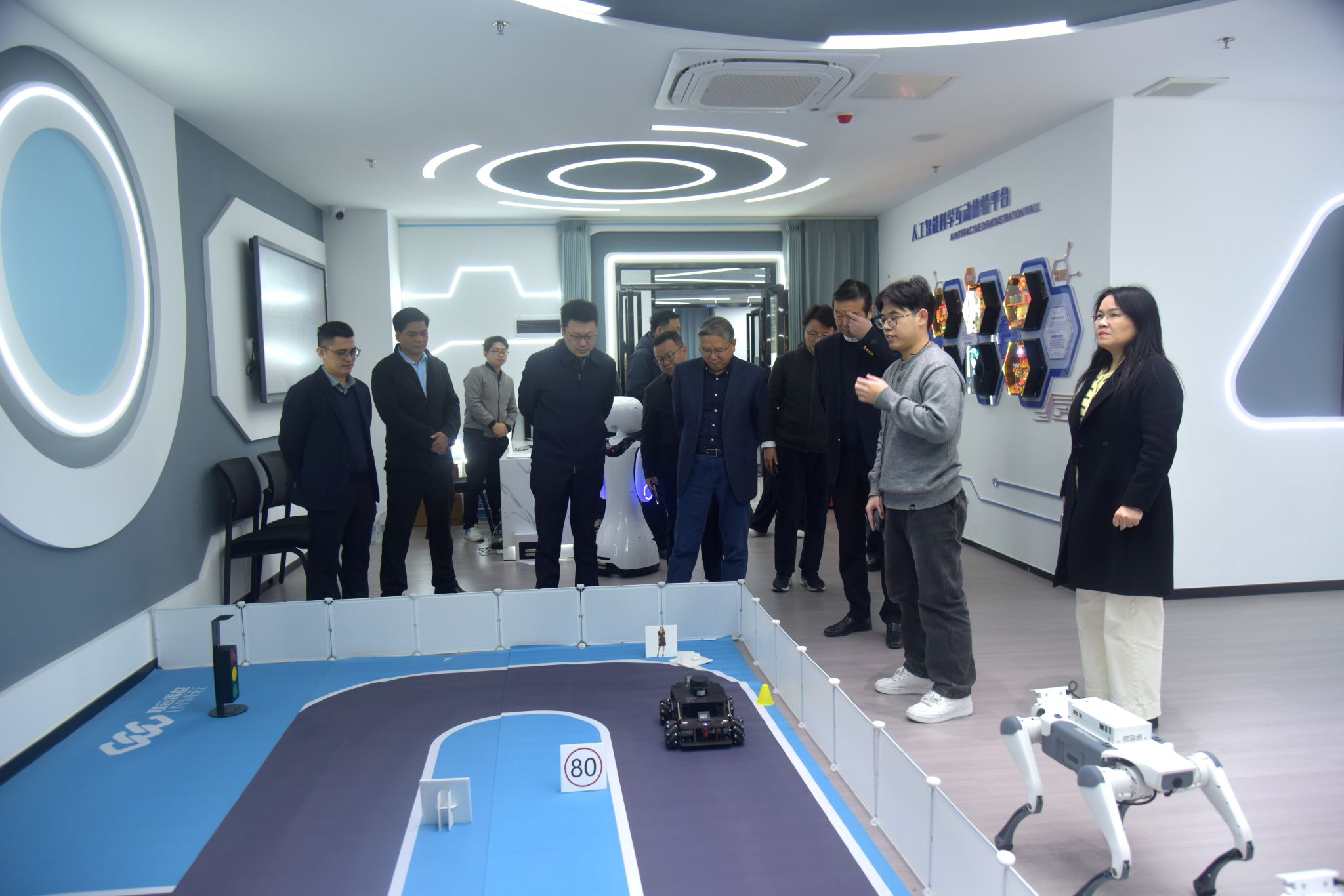 在刘香萍副校长的陪同下,南京审计大学金审学院一行先后参观了bat365官网综合楼加工中心实训基地、华为ICT产业学院,以及求实楼智能制造生产线、人工智能产业应用实验中心、大学物理实验中心等多个教学实践场所。各实训基地设备先进、场景真实,生动展现了bat365官网在推进校企协同育人、强化实践教学方面的扎实基础与阶段成效。来宾在参观过程中表示,bat365官网在实训条件建设与产业学院运营方面的经验具有很好的借鉴意义。