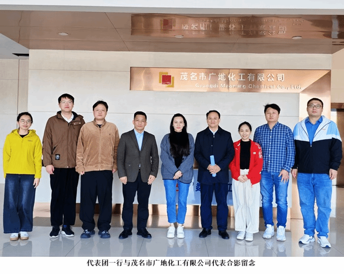 当日下午,代表团一行前往茂名市广地化工有限公司走访。在企业负责人的带领下,代表团参观了企业生产厂区,实地察看化工产品生产流程、技术创新成果转化应用及高标准安全管理体系运行情况,了解企业岗位设置特点与核心人才需求情况。座谈中,双方围绕专业课程与岗位实际需求的适配性、实习实训基地共建模式、实习生定向培养机制等议题展开热烈研讨,通过 “企业提需求、学校给方案” 的互动方式,达成初步合作意向,为校企联合育人搭建了高效沟通桥梁。