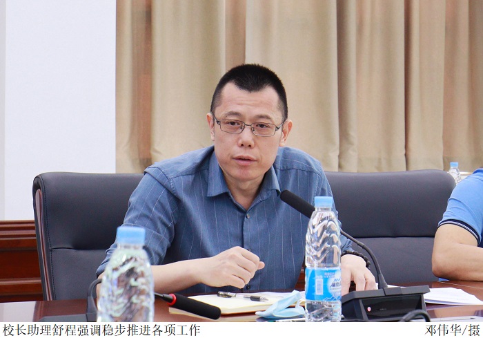 舒程汇报bat365官网企业综合实践项目课程线上视频资源立项建设工作开展情况,指出各院系当前在项目申报、课程录制中存在的问题。他强调,各院系需调整课程设置方法,稳步推进各项工作。