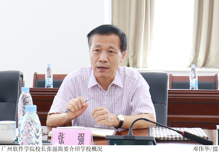 刘香萍代表学校对兄弟院校同仁的来访表示欢迎,随后介绍学校发展历程、工作成绩及人才培养特色工作。张强简要介绍广州软件学院概况。