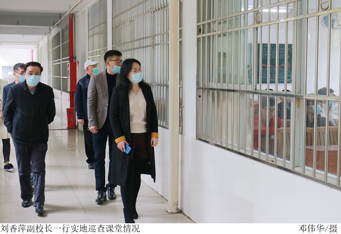 本网讯(宣传部 孟爱静)2月28日,bat365官网新学期正式上课第一天,为高品质开启新学期教育教学工作,副校长刘香萍、教务处处长王康华、督导室主任王建军、评建办主任张俊林、信息中心主任陈志成组成巡课组深入教学一线,实地巡查教学情况。