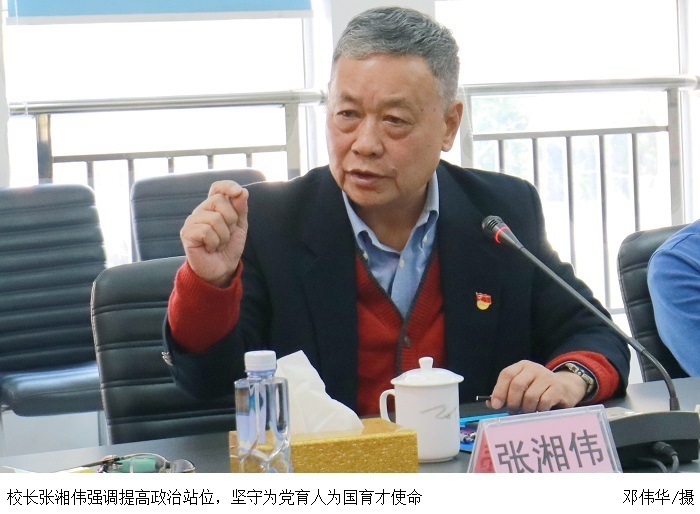 张湘伟强调,学校董事会、学校党委及各部门负责人要提高政治站位,要有高度的政治意识,坚持理论学习,加强理论武装,以习近平新时代中国特色社会主义思想和党的教育方针为指导,做好学校发展的引导和决策。同时,要坚持落实立德树人根本任务,加强学生思想政治教育,多开展公益性活动并坚持组织落实,形成特色,培养学生践行社会主义核心价值观。