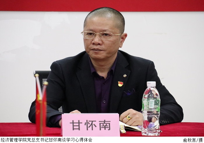 本网讯(经济管理学院 邱祺)12月14日,经济管理学院在党员活动室 4103 召开专题学习会,校党委副书记黎会友出席并领学党的十九届六中全会精神、习近平总书记关于教育的重要论述。全体教工党员参会。