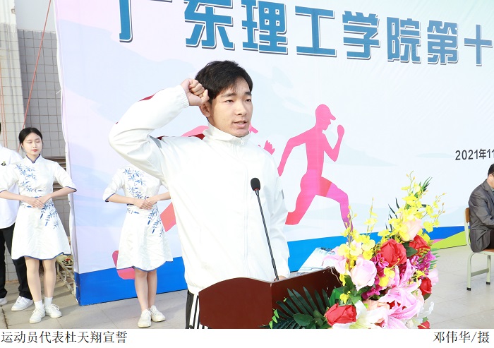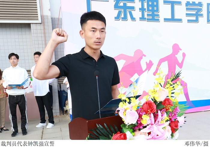 裁判员代表钟凯强及运动员代表杜天翔分别宣誓,表示将团结协作,严格遵守比赛规则,确保运动会顺利有序进行。