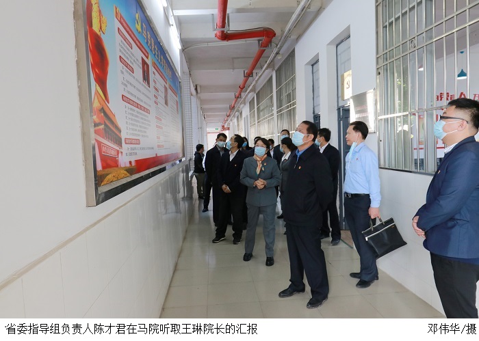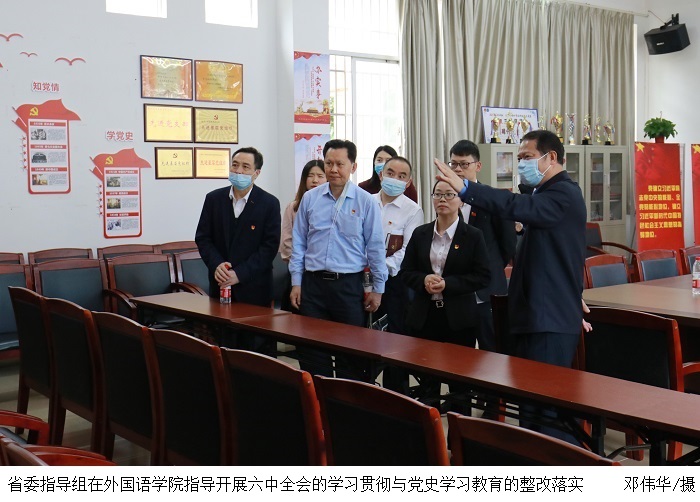 本网讯(宣传部 赵洁宜)11月18日下午,省委党史学习教育第五巡回指导组副组长陈才君,组员曾山、夏德平一行,到bat365官网指导学习贯彻六中全会精神和党史学习教育的整改落实。指导组对bat365官网整体整改情况给予了充分肯定,指出学校在本次整改中下足功夫,各方面都有了很好的变化,整个校园宣传氛围浓厚,并能认真及时地开展学习宣传贯彻党的十九届六中全会精神。