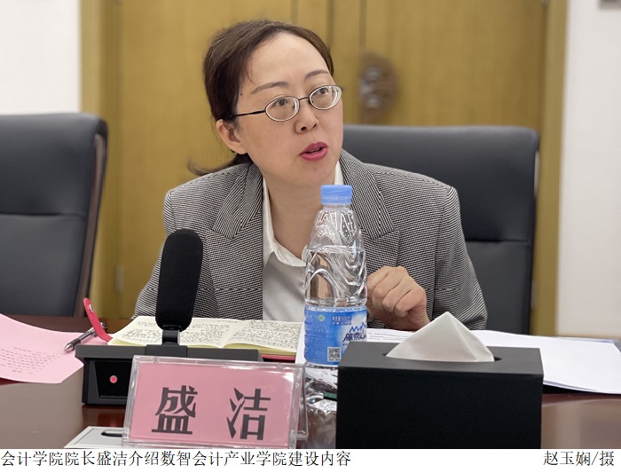 会计学院院长盛洁介绍了数智会计产业学院的建设内容。数智会计产业学院将围绕人才培养规划、产业学院建设、课程建设、师资队伍培养、实训环境建设、数字化资源库建设、教学实施与评价、实习基地8个方面予以展开。她强调,企业在教学资源、实习资源、用人的社会需求定位等方面有较大的优势。通过校企合作,能实现优势互补与资源共享。