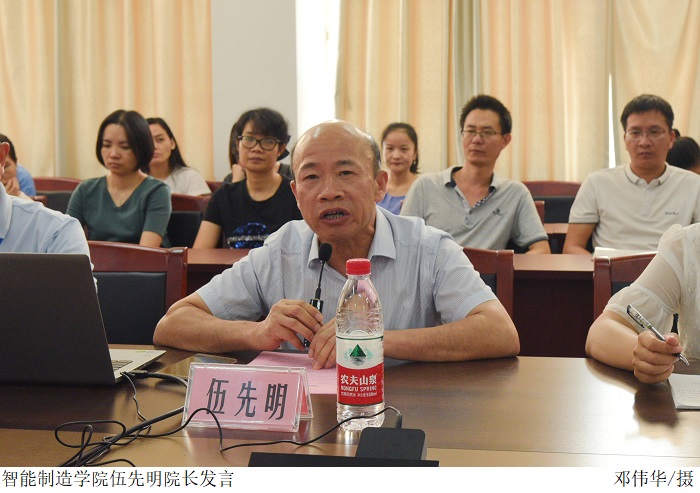 智能制造学院伍先明院长代表智能制造学院向一直以来关心和支持工业自动化系和汽车系发展的领导、老师表示衷心的感谢和崇高的敬意。伍先明院长表示,智能制造的成立,是符合时代发展,符合高等教育发展规律的决定,学院领导班子深感责任重大,将团结全体老师,公平的对待每一位老师,凝聚大家的智慧,和老师们一起做好学科建设、专业建设,为广东制造业的发展培养好社会需要的应用型人才。